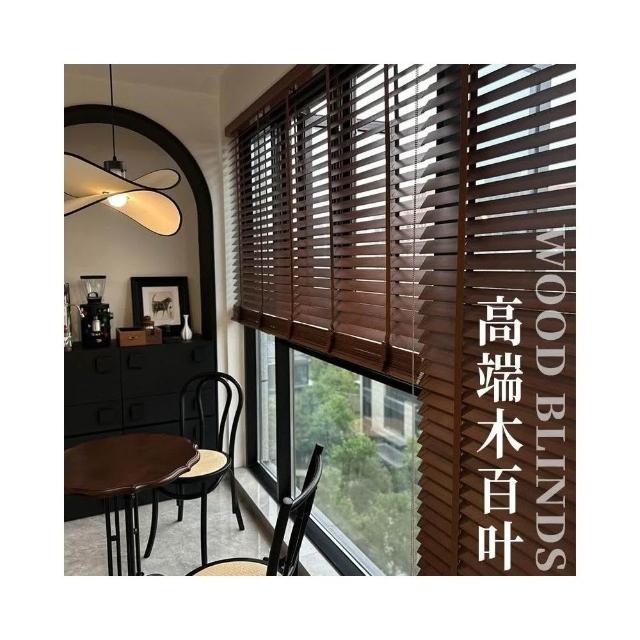 免運2025年新款木質百葉窗電動升降中古風遮光遮陽捲簾臥室實木百葉窗