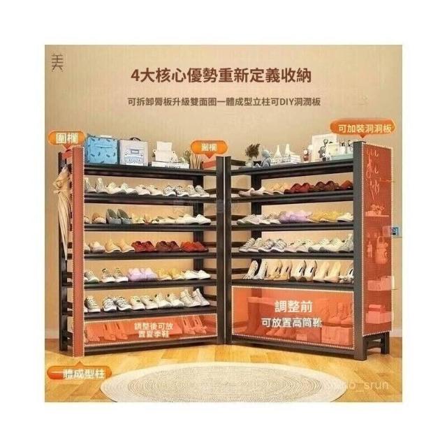 鋼製加厚鞋架 鞋櫃門口落地多層置物架 大容量入戶門後鞋櫃 收納架子 角鋼置物架 多功能置物架 免螺絲 鐵架 角鋼層架