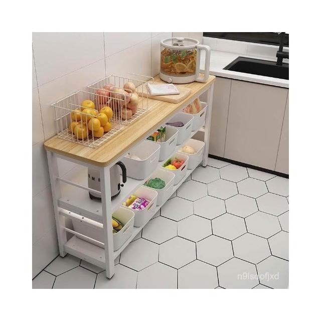 可開發票 廚房置物架 靠墻切菜桌長條窄款備餐操作臺餐邊櫃微波爐鍋具收納架 切菜桌 櫥櫃 置物架 餐邊桌 儲物架 操作臺