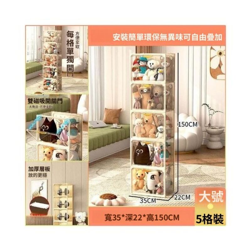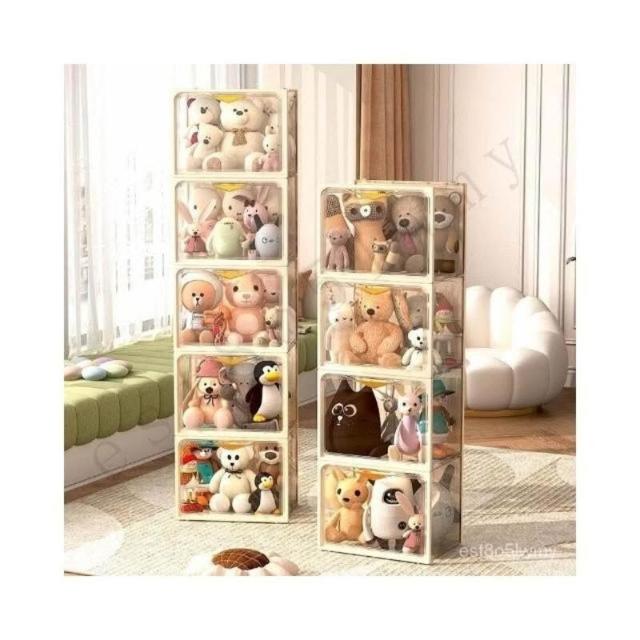 限時優惠 娃娃收納桶 透明籃筐佈毛絨箱玩具筒 玩偶櫃 裝公仔盒收納神器 展示架 ORJO
