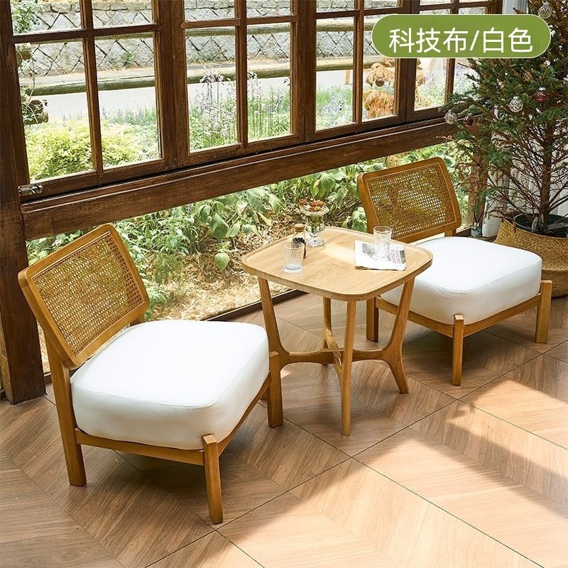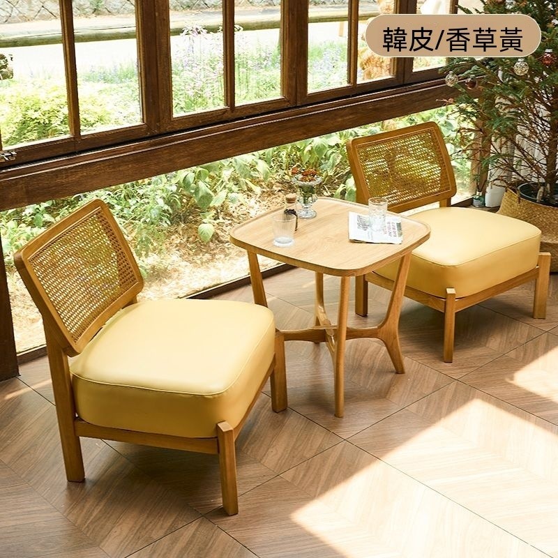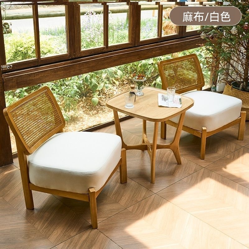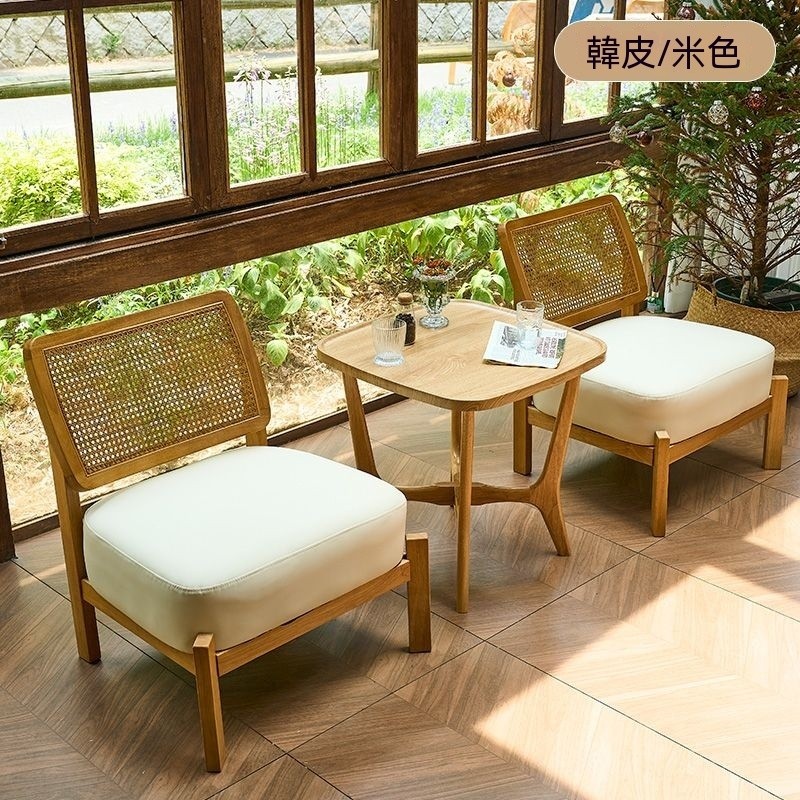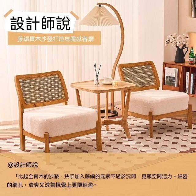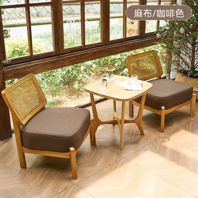 日式藤編餐椅 咖啡廳休閑桌椅組合 書店卧室陽台休閑椅 洽談椅 奶茶店單人沙發椅 藤編全實木餐椅