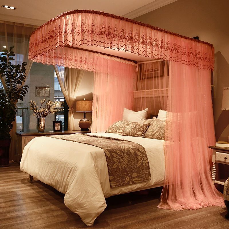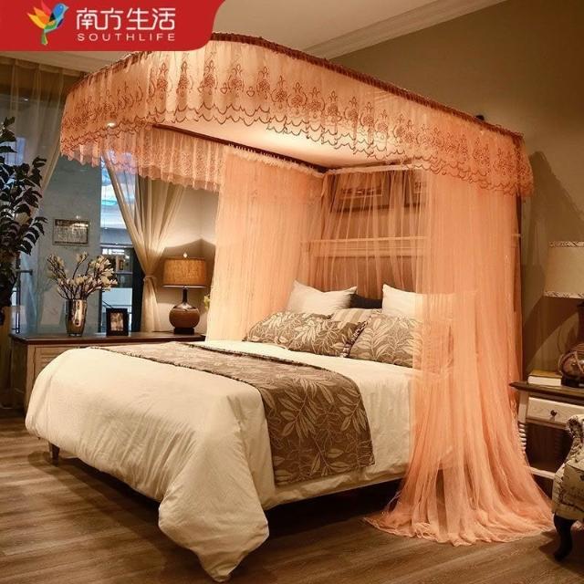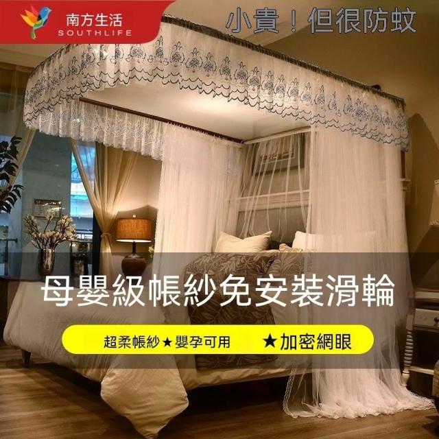 免打孔導軌蚊帳 伸縮U型落地單人蚊帳 透氣三開門雙人蚊帳加大 加粗不鏽鋼管支架蚊帳 1.2米床蚊帳