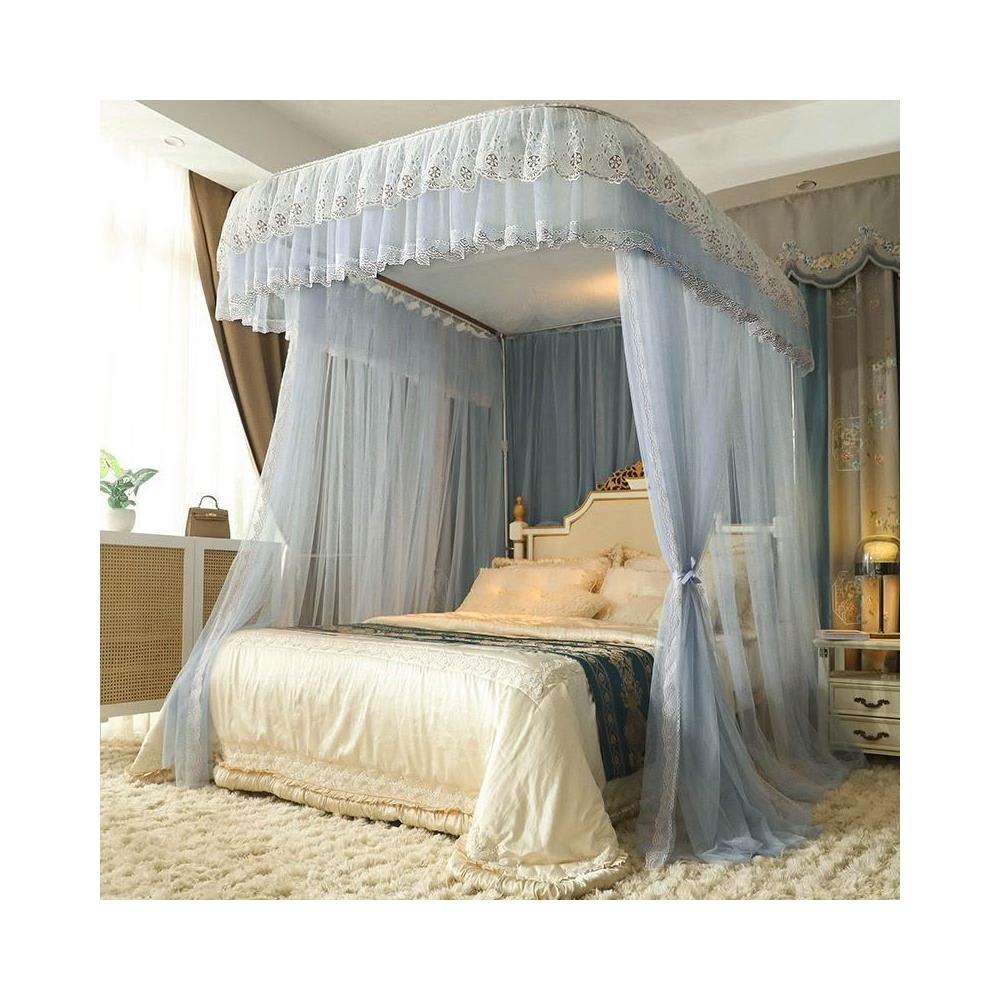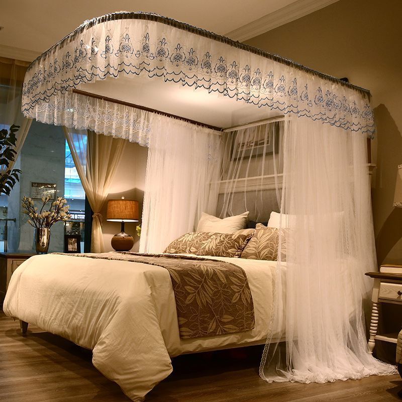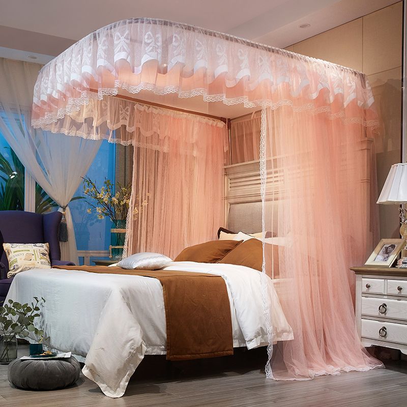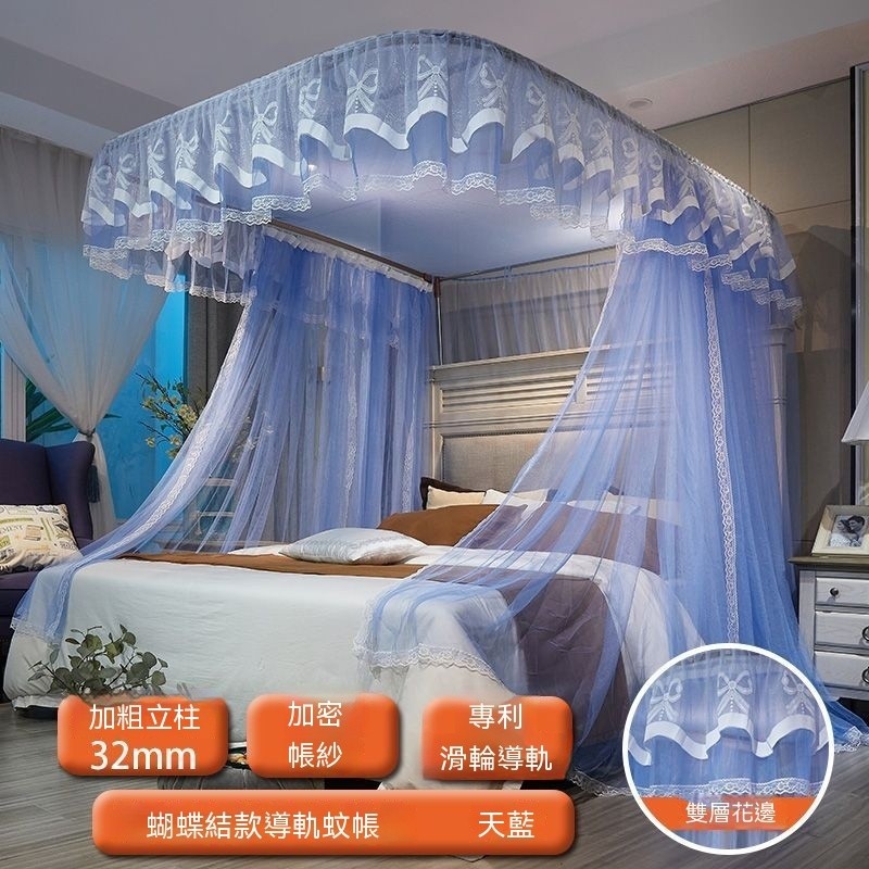 免打孔導軌蚊帳 伸縮U型落地單人蚊帳 透氣三開門雙人蚊帳加大 加粗不鏽鋼管支架蚊帳 1.2米床蚊帳