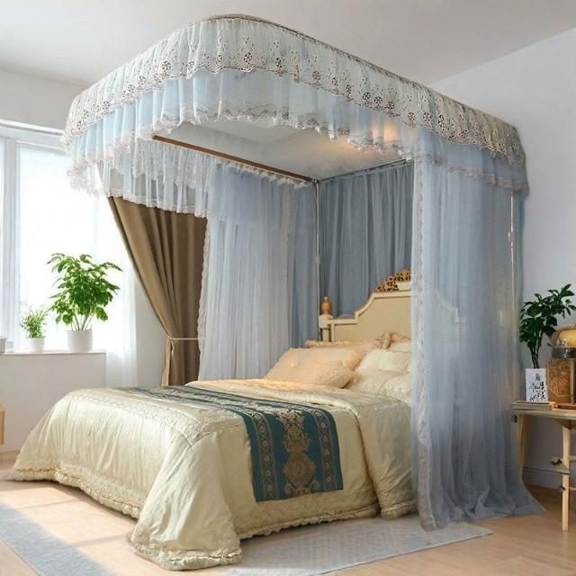 免打孔導軌蚊帳 伸縮U型落地單人蚊帳 透氣三開門雙人蚊帳加大 加粗不鏽鋼管支架蚊帳 1.2米床蚊帳