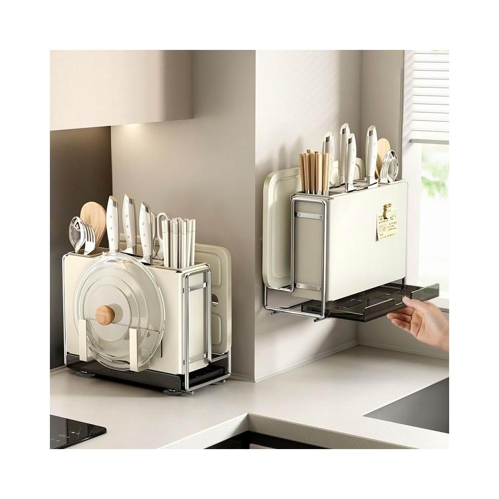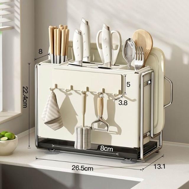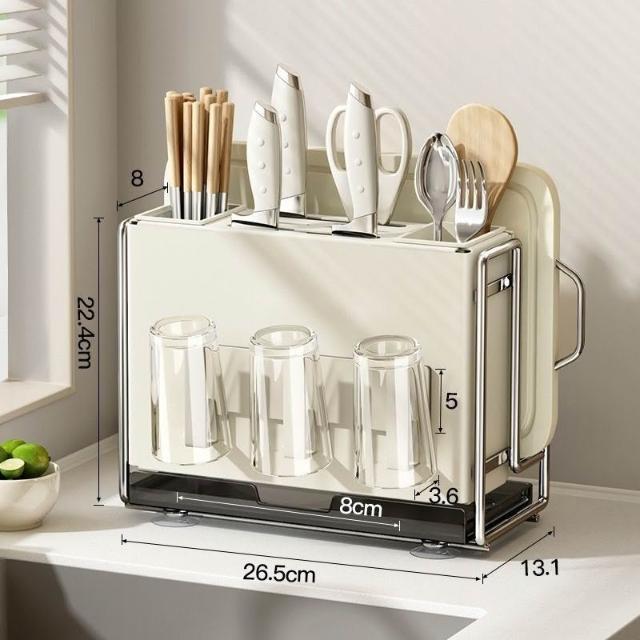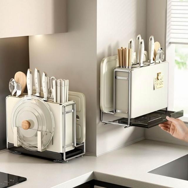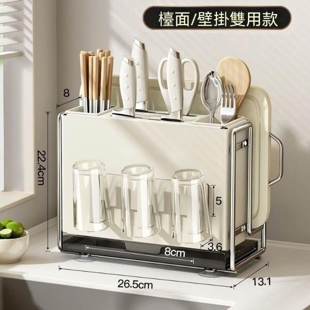 廚房刀架 置物架 家用多功能檯面筷子籠砧板架 放菜板刀具一體收納架