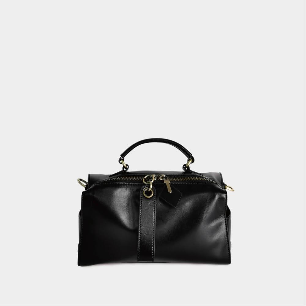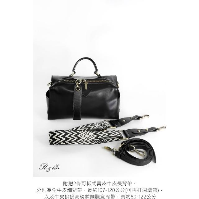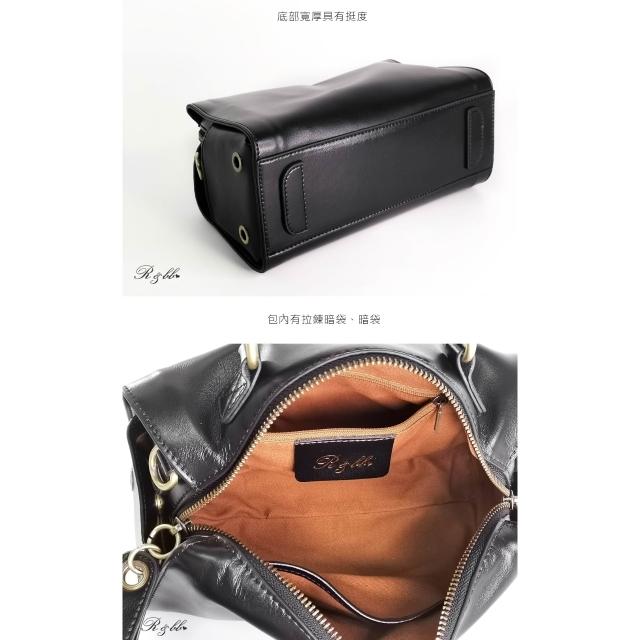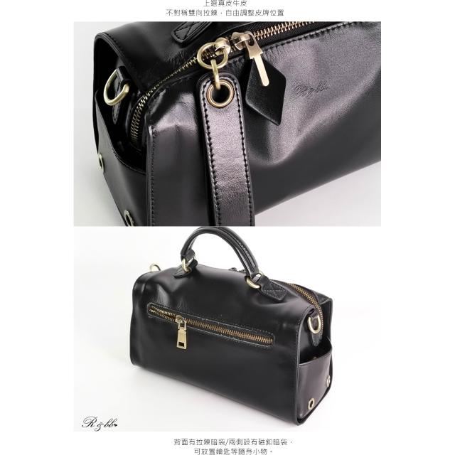R&BB真皮牛皮包包-復古時尚波士頓手提包 不對稱拉鍊小方包(附兩款長背帶)-黑色
