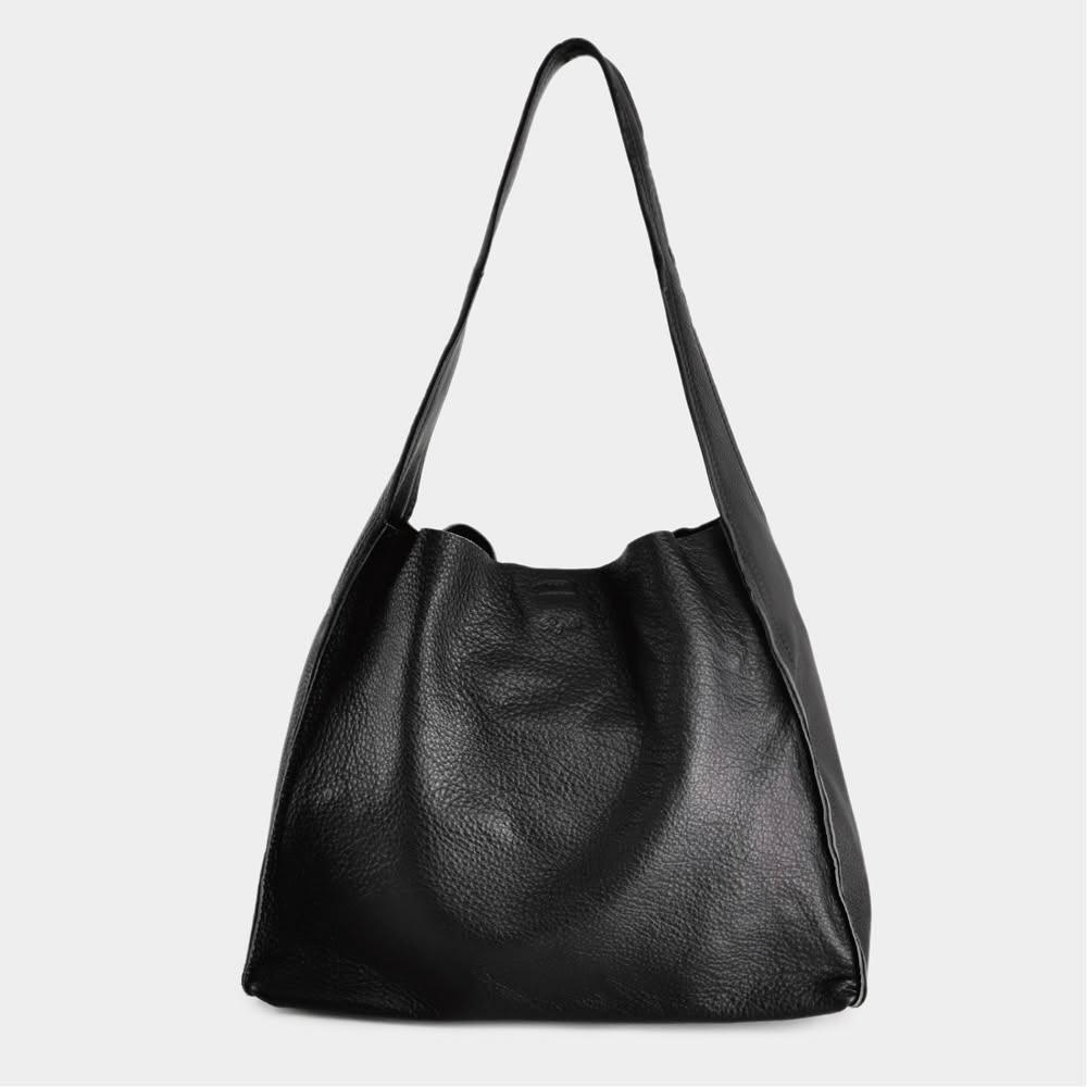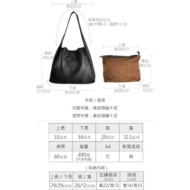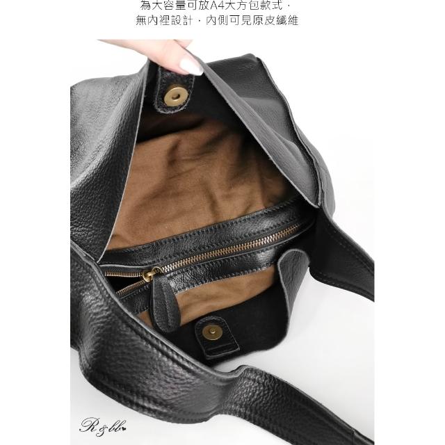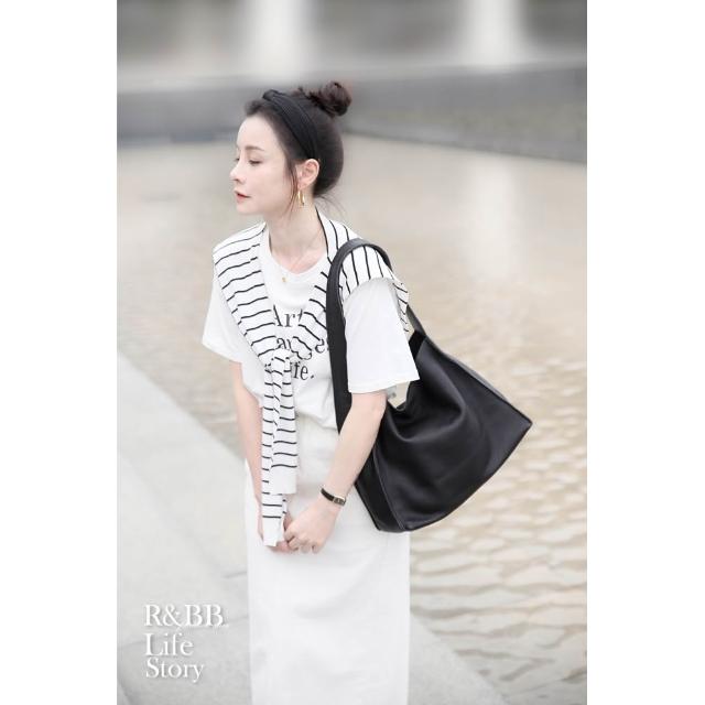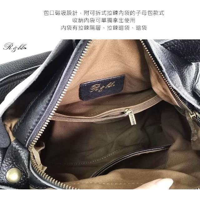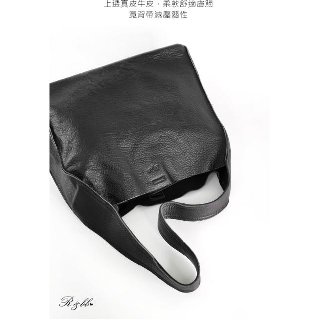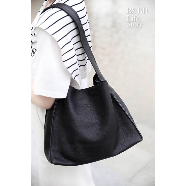 R&BB真皮牛皮包包-隨性慵懶柔軟皮革子母包 寬背帶大容量托特肩背包-黑色