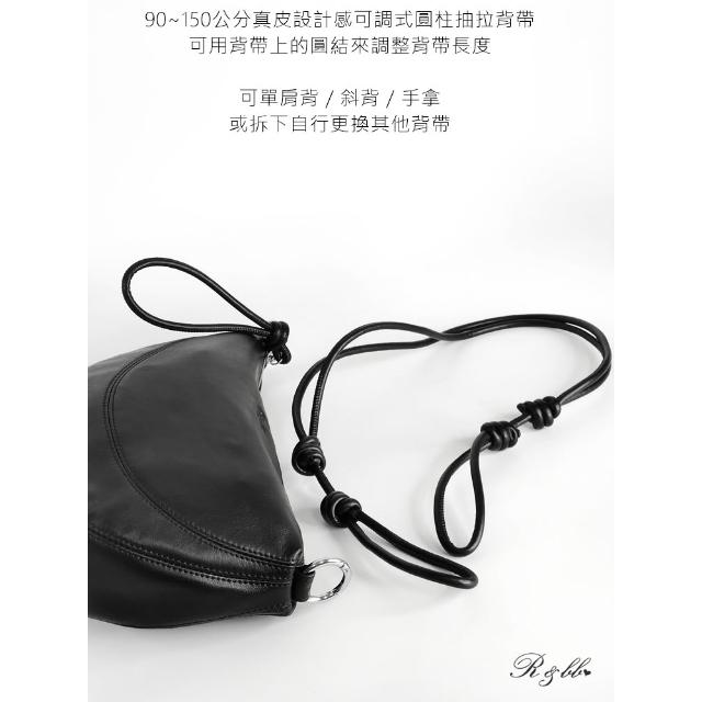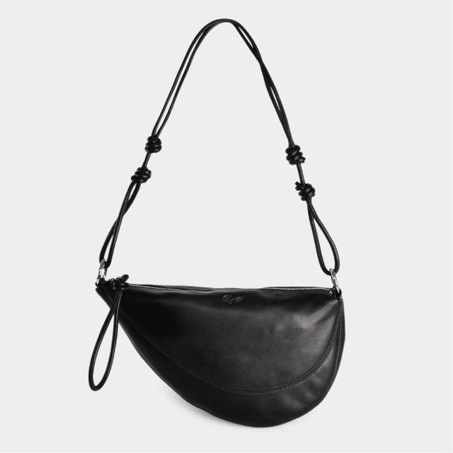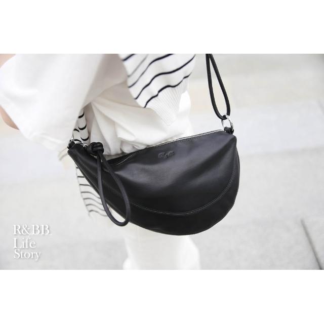 R&BB真皮牛皮包包-牛角包不對襯半圓馬鞍包-黑色