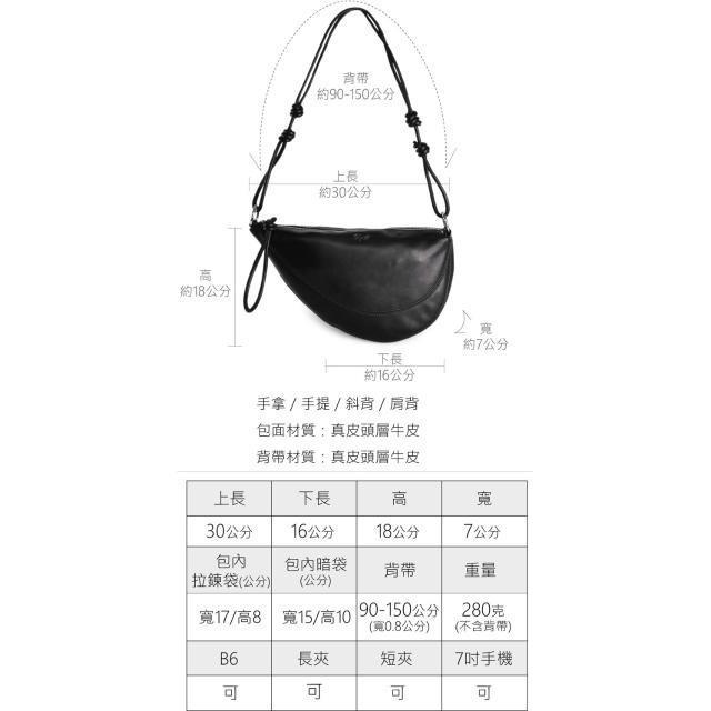 R&BB真皮牛皮包包-牛角包不對襯半圓馬鞍包-黑色