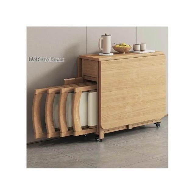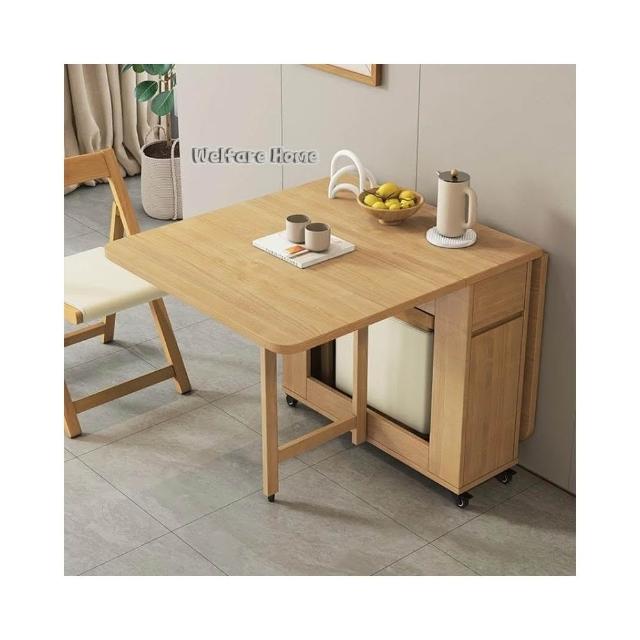 闕可精選 免運 實木折疊餐桌小戶型傢用多功能可移動餐桌椅組閤6人飯桌邊桌收納桌省空間折疊桌