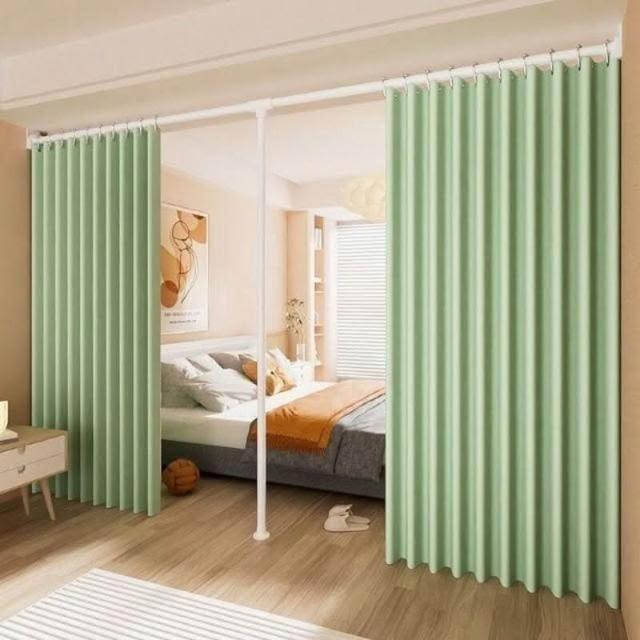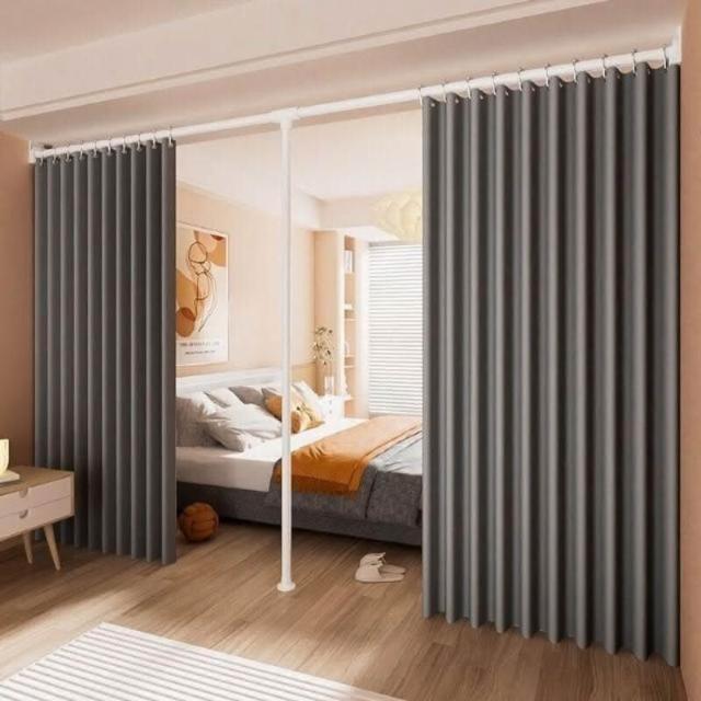 闕可精選 (免運+免安裝)隔斷 屏風 臥室免打孔擋床隔斷簾 房間分割出租房I型U床位遮擋佈簾子