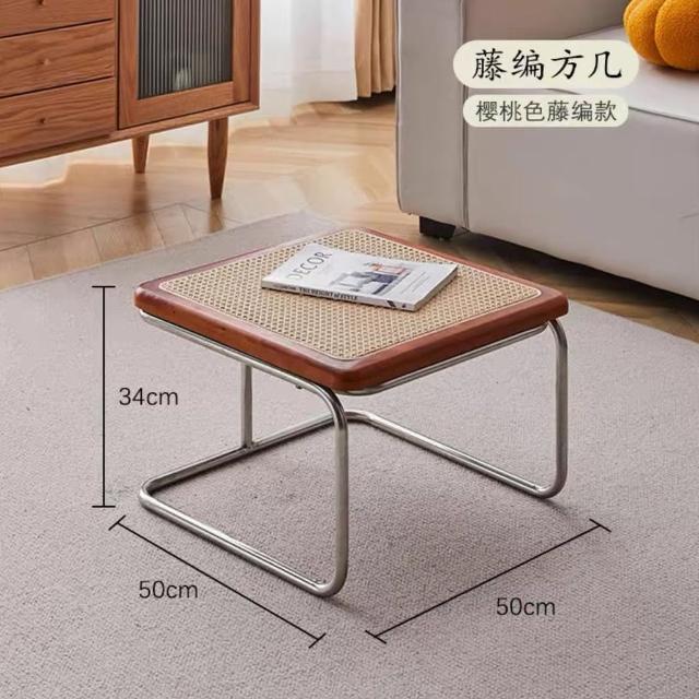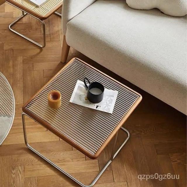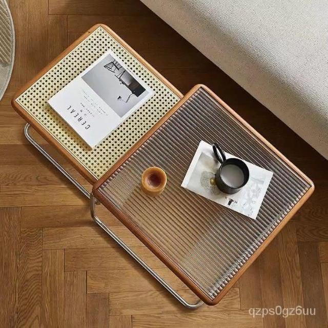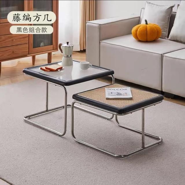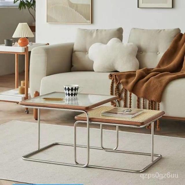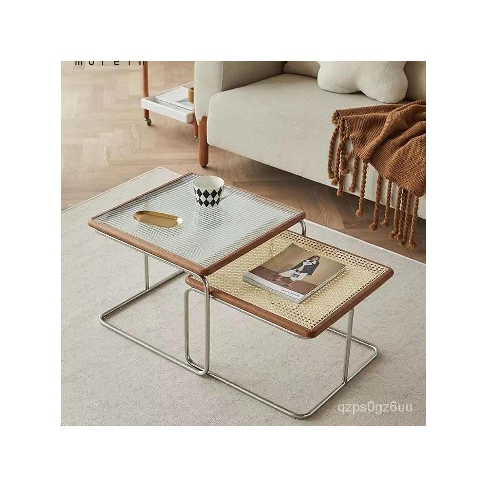 精選 北歐實木中古風不銹鋼玻璃茶幾 茶幾大小組閤 藤編邊幾 沙發角幾 現代簡約
