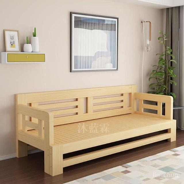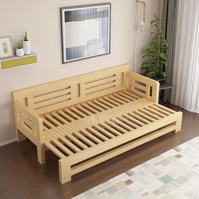 精選 沙發床 熱賣 實木沙發床客廳多功能抽拉床坐臥兩用鬆木伸縮床推拉床折疊沙發床傢俱 沙發床/懶人沙發/收納床/兩用椅/