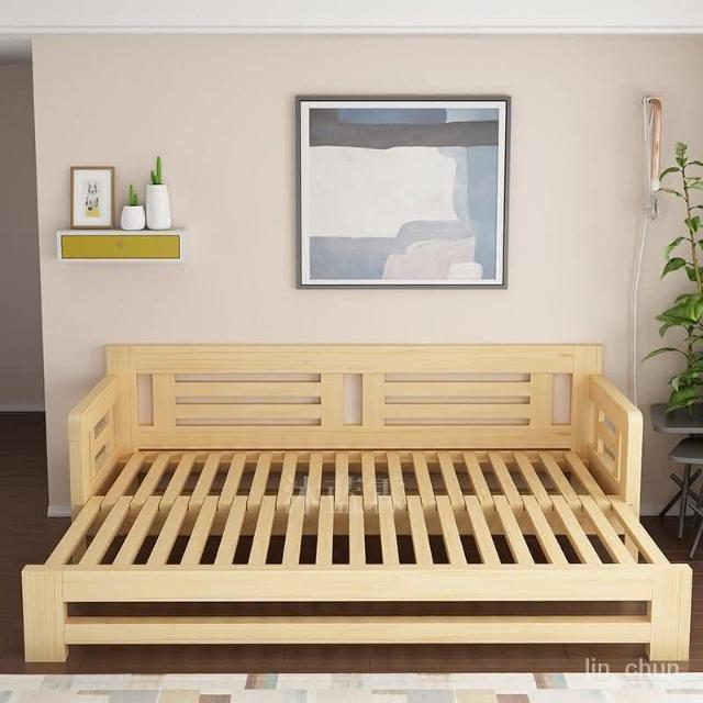 精選 沙發床 熱賣 實木沙發床客廳多功能抽拉床坐臥兩用鬆木伸縮床推拉床折疊沙發床傢俱 沙發床/懶人沙發/收納床/兩用椅/