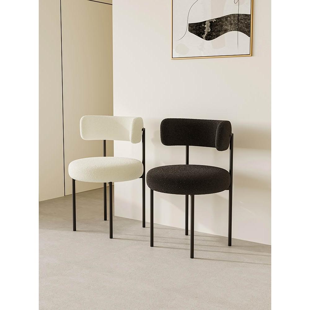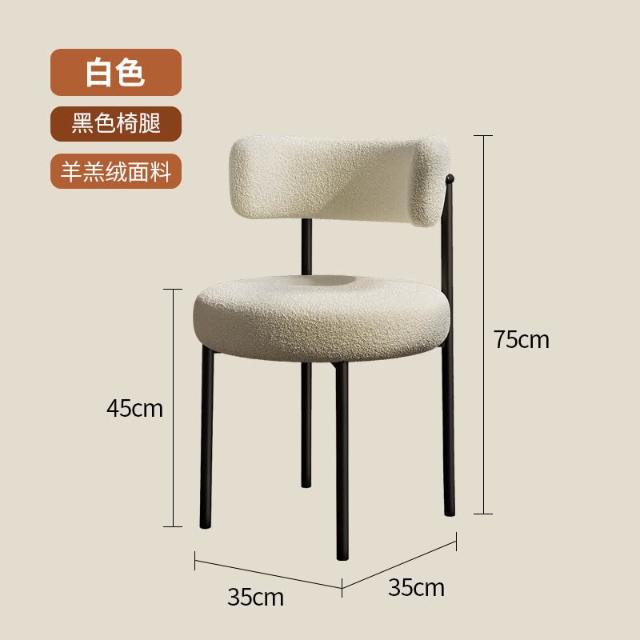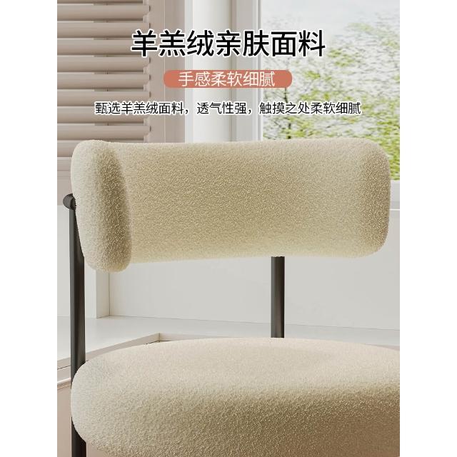 奶油风餐椅家用设计师椅子轻奢高级简约餐桌椅羊羔绒化妆凳子靠背