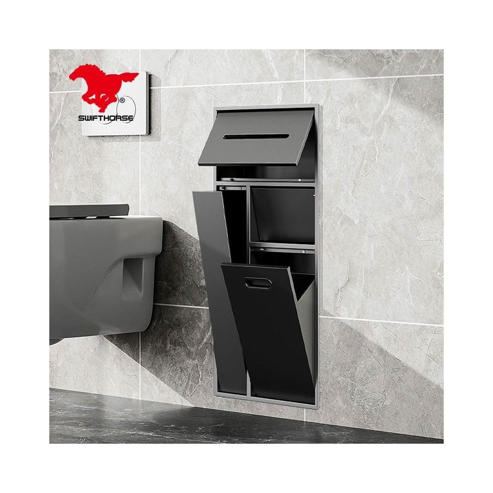 不銹鋼壁龕衛生間浴室金屬嵌入式垃圾桶成品馬桶邊紙巾置物架