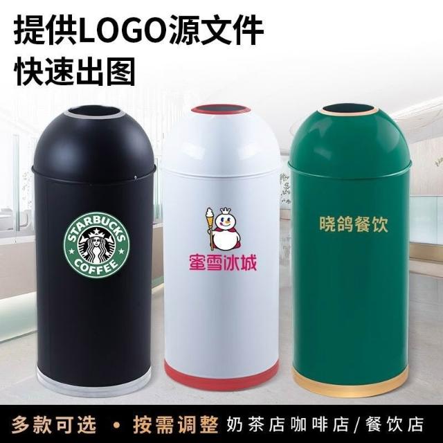 子彈頭垃圾桶商用大容量大號不銹鋼圓形無蓋創意商場奶茶店咖啡廳
