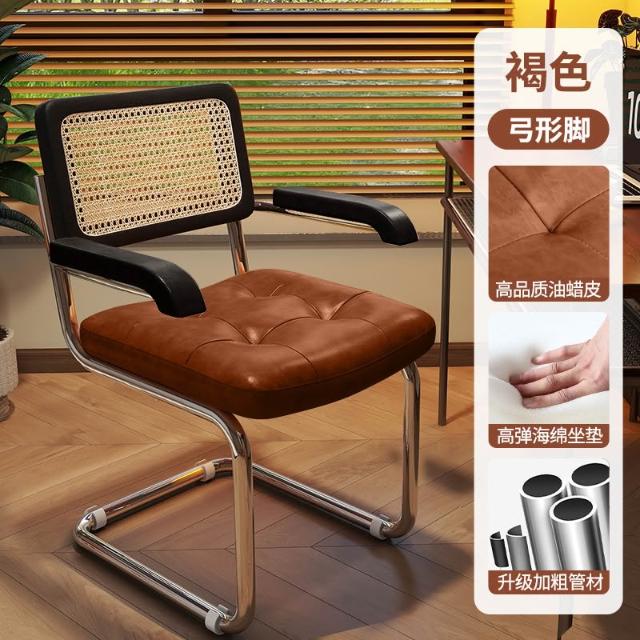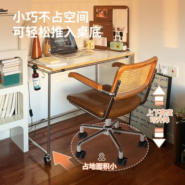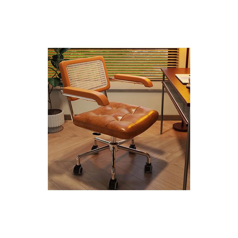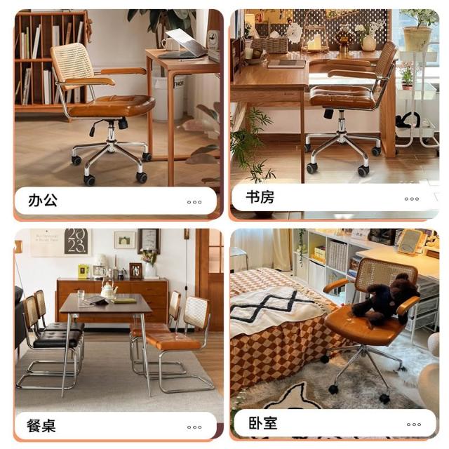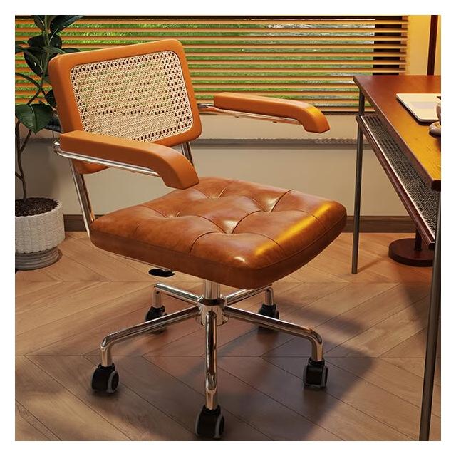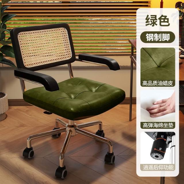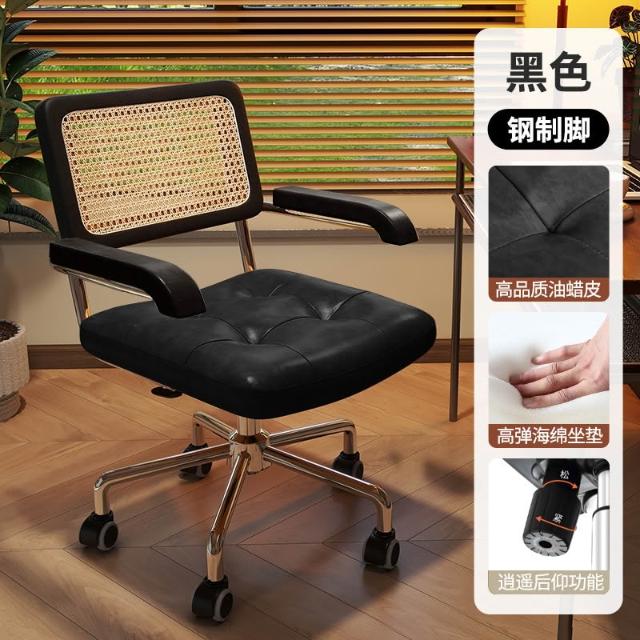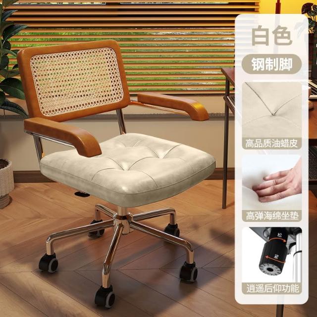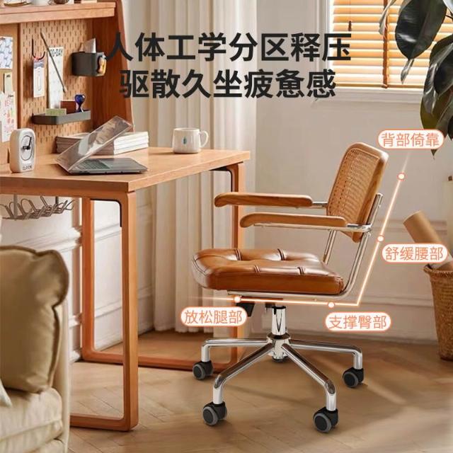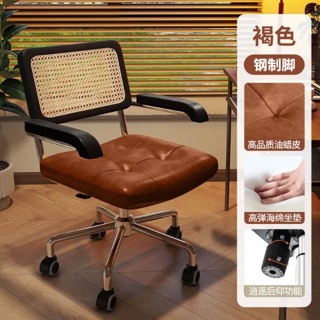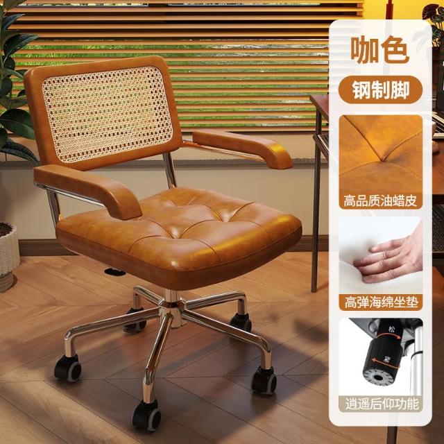 電腦椅家用藤編復古辦公椅書房臥室學習書桌椅子靠背餐椅升降轉椅