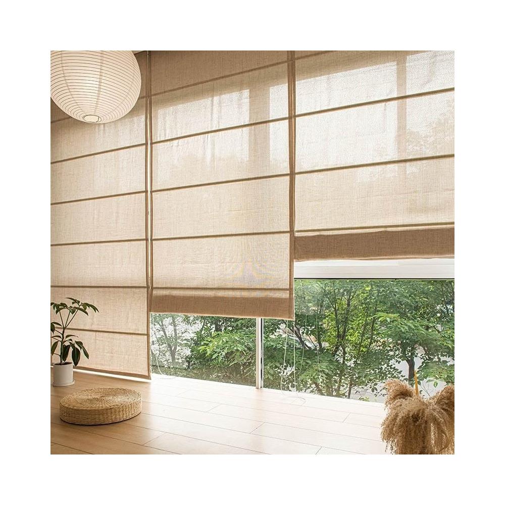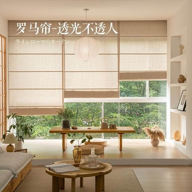 免運#日式亞麻紗羅馬簾茶室民宿窗簾遮光侘寂電動陞降捲簾定製簡約裝飾