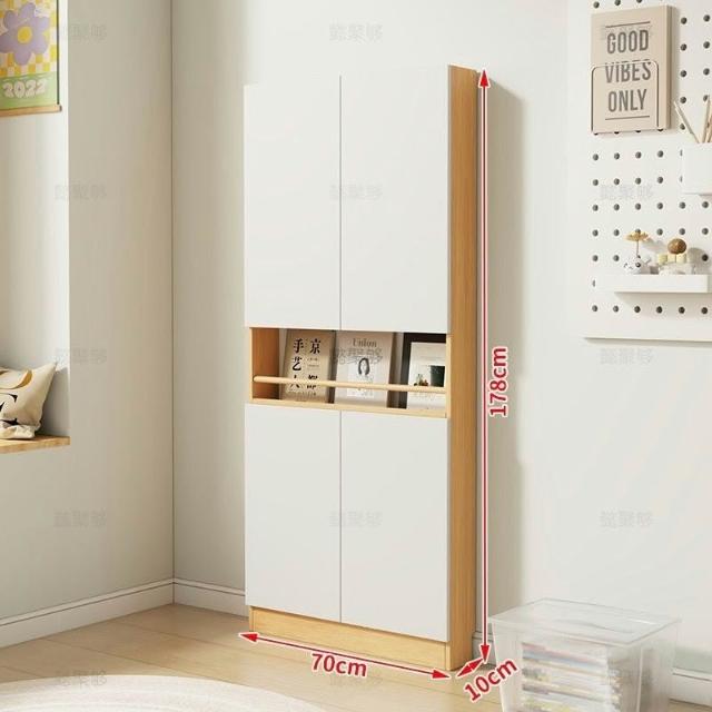 精選 置物架 超扁收納櫃 靠墻超薄書櫃臥室門後置物架實木門後超薄收納櫃夾縫櫃超窄儲物櫃