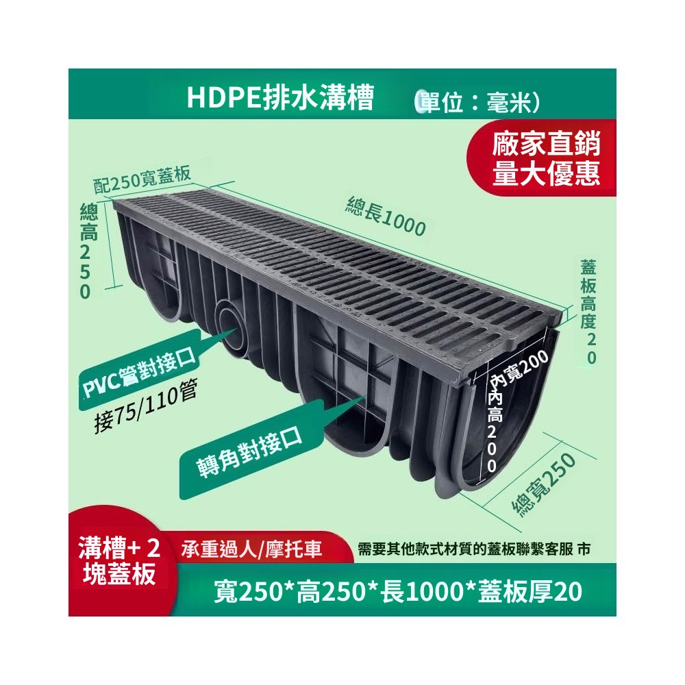 精選 量大優惠高分子HDPE塑料排水溝水溝槽 U型槽 污水下水系统 管道排水 廚房下水道 線性排水地溝蓋板 水溝 水槽 下水道