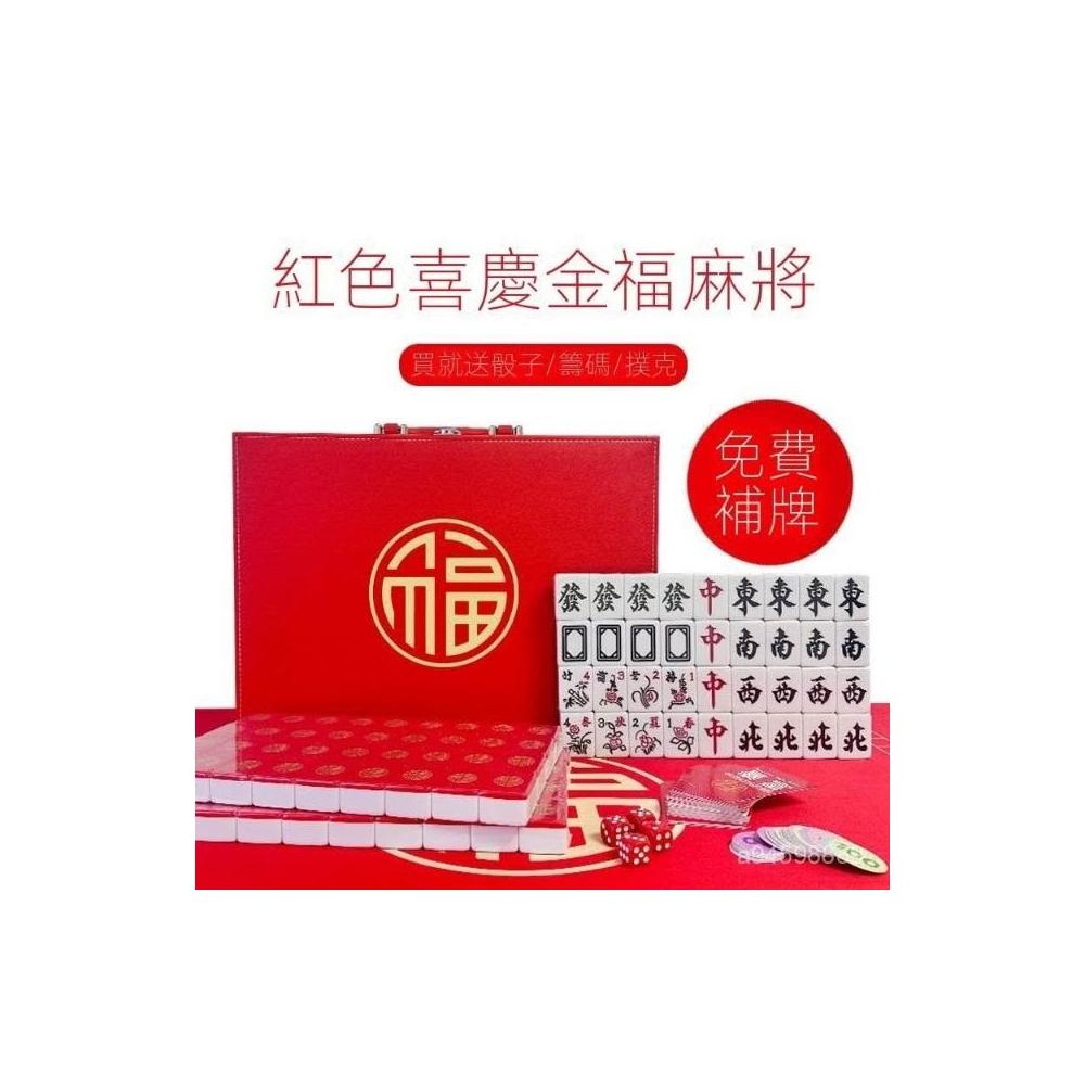 精選 ✿免運✿熱銷✿麻將組 手搓麻將牌家用紅色金福40/42/44定製麻將聚會禮盒裝