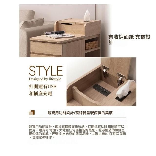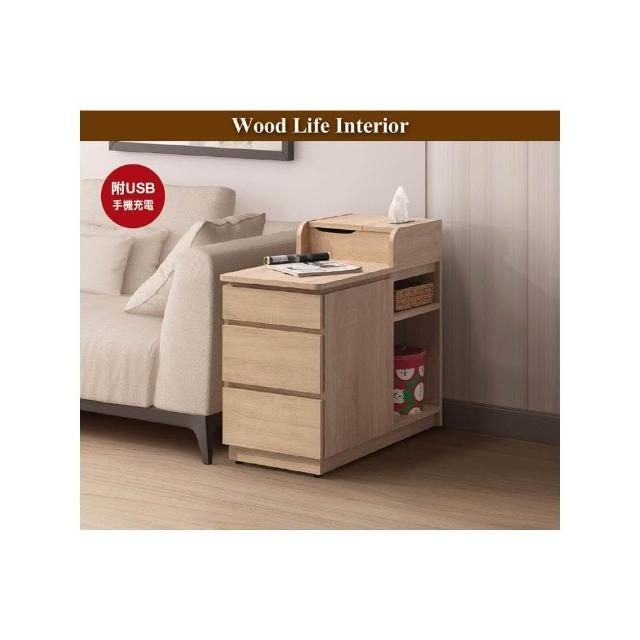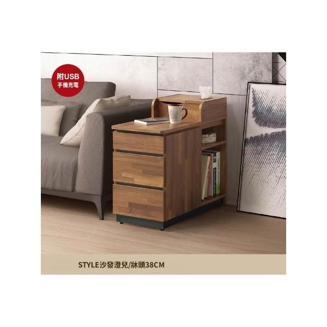 精選 這家子家居 STYLE多功能38CM沙發邊几/床頭櫃(附USB手機充電)