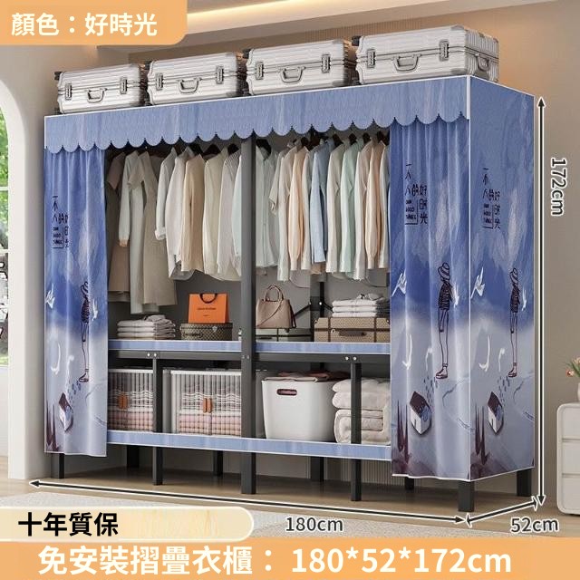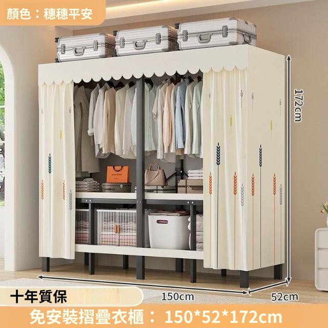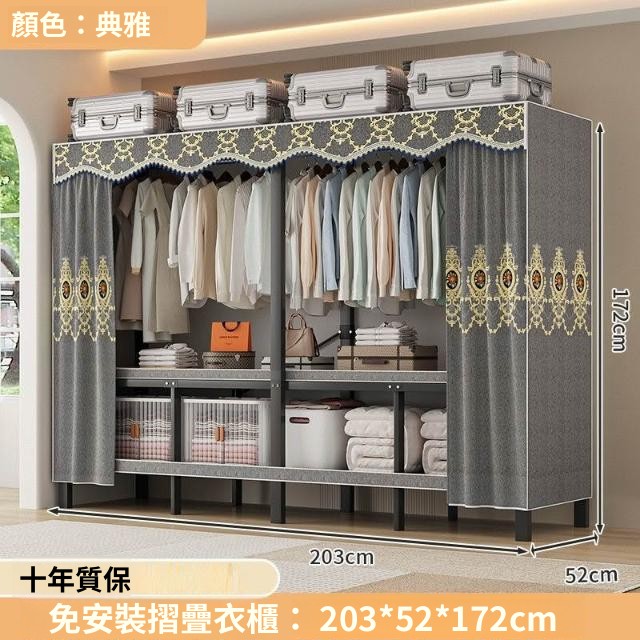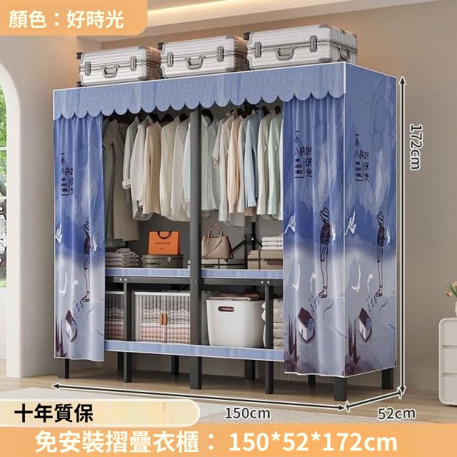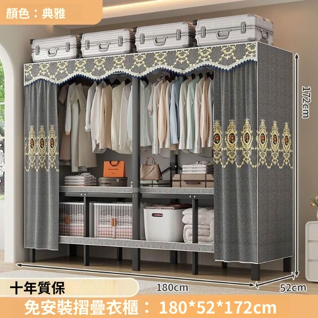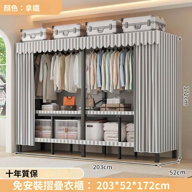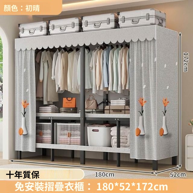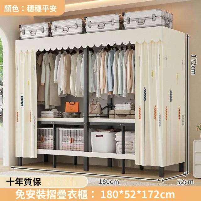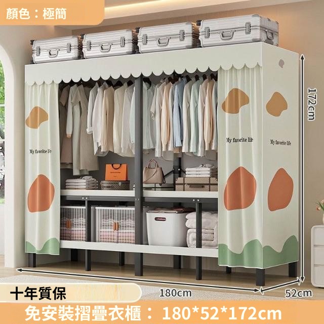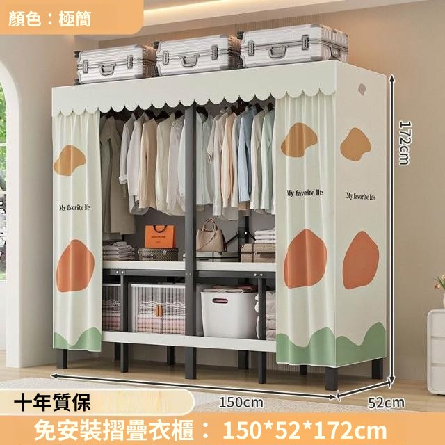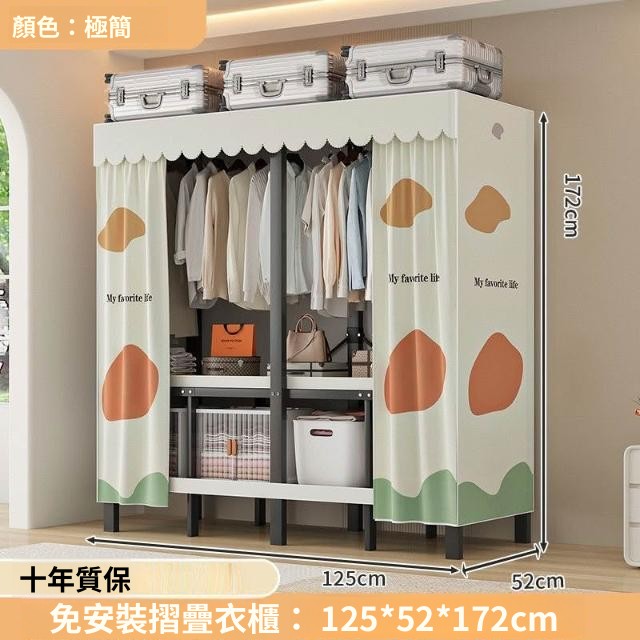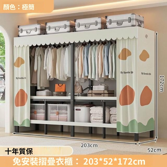 精選 一體式免安裝簡易衣櫃可折疊耐用加寬臥室家用磁吸密封衣櫥宿捨