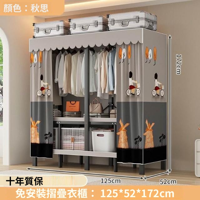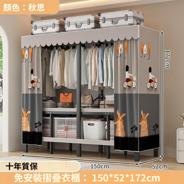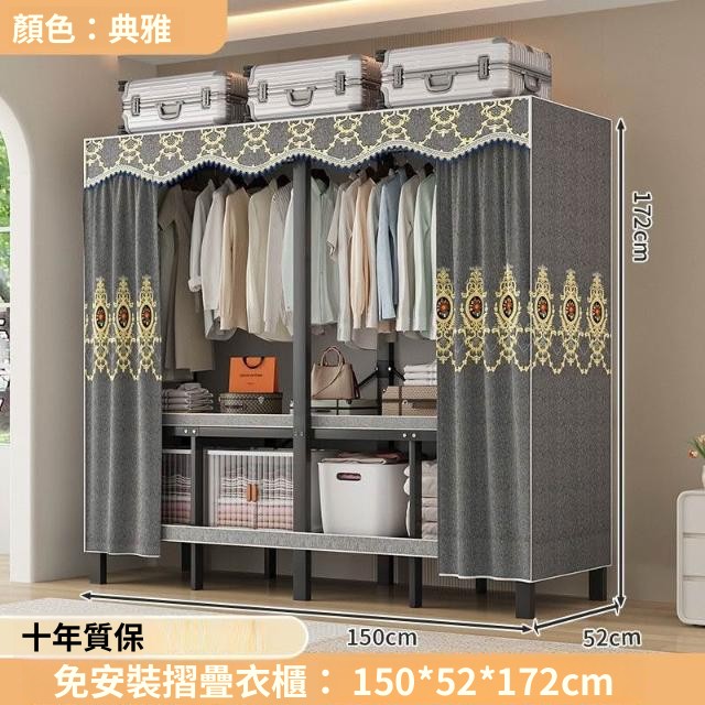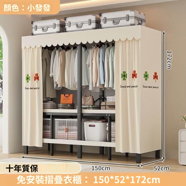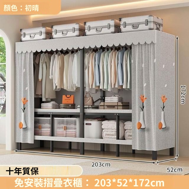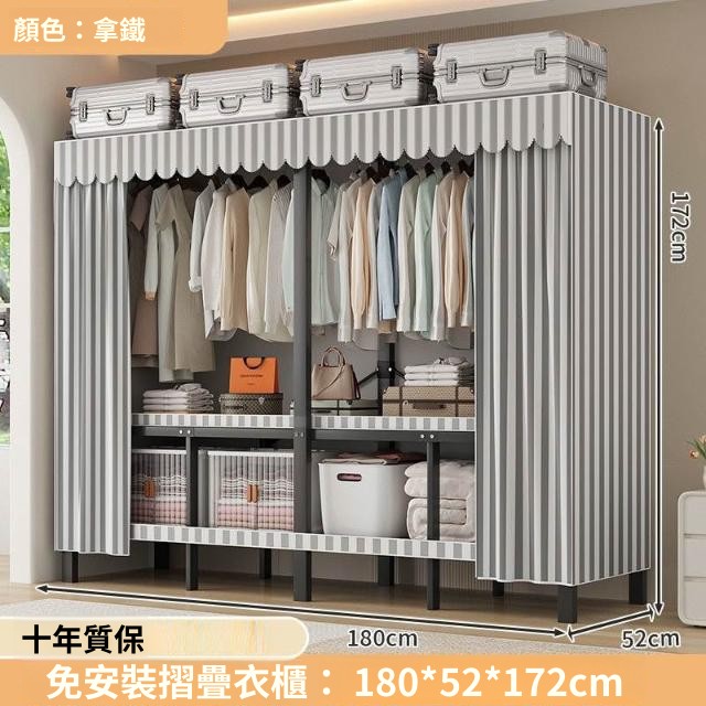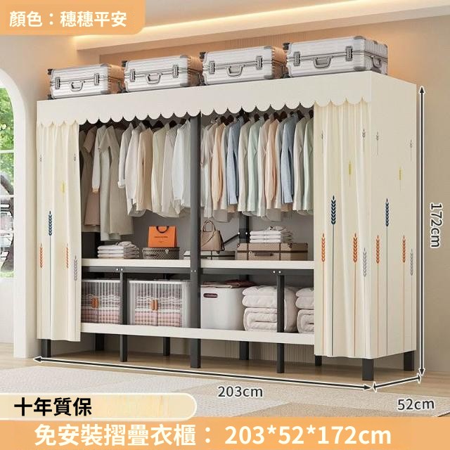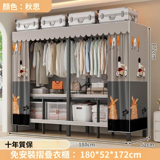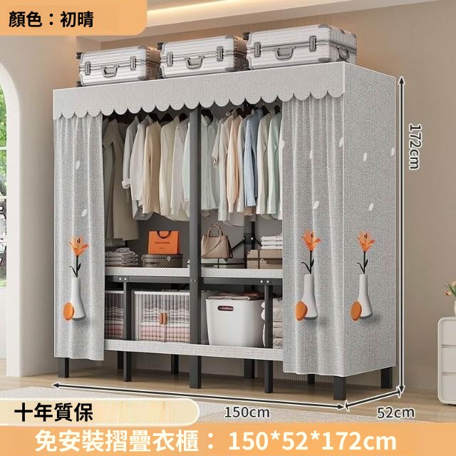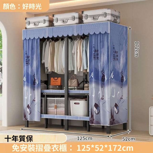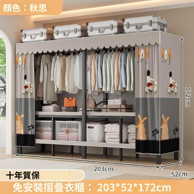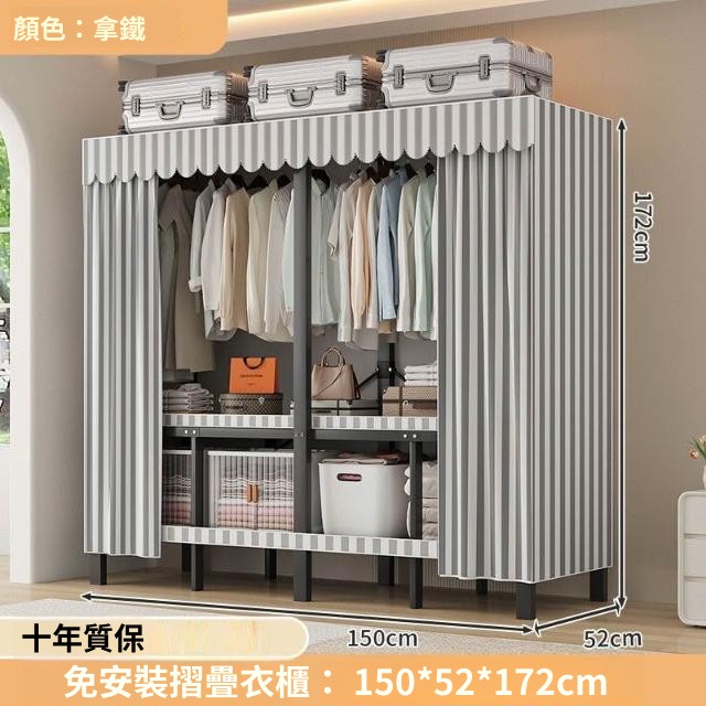 精選 一體式免安裝簡易衣櫃可折疊耐用加寬臥室家用磁吸密封衣櫥宿捨