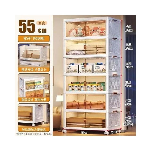 🔥免運 免安裝收納櫃🔥多層收納櫃 可移動儲物櫃 加大容量衣櫃 衣物收納箱 玩具收納箱 雜物整理櫃 雙開門收納櫃