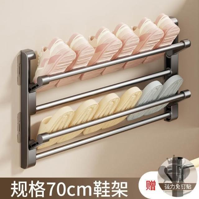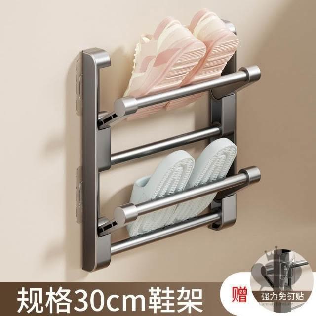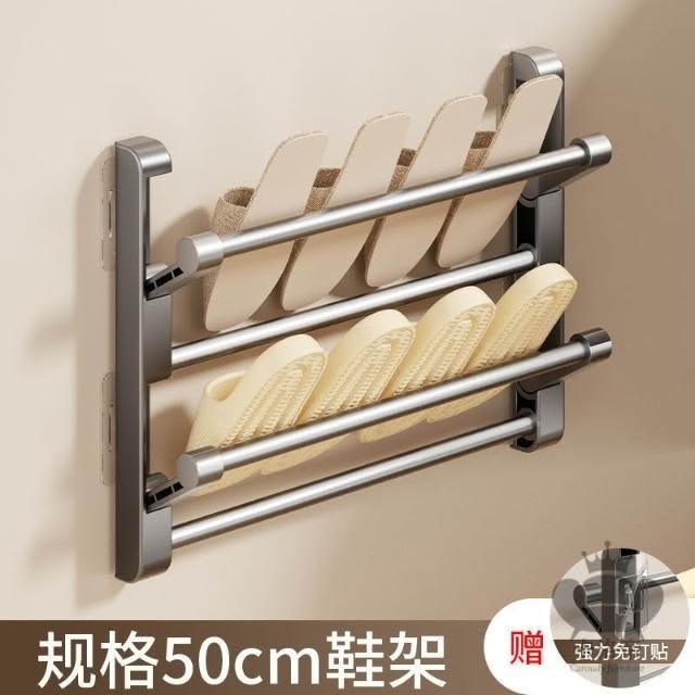 [衛生間拖鞋架 整裝出貨]浴室壁掛鞋架 免打孔鞋子收納架 鞋子瀝水架 摺疊毛巾架 浴室鞋子置物架 衛生間門後鞋架XEH