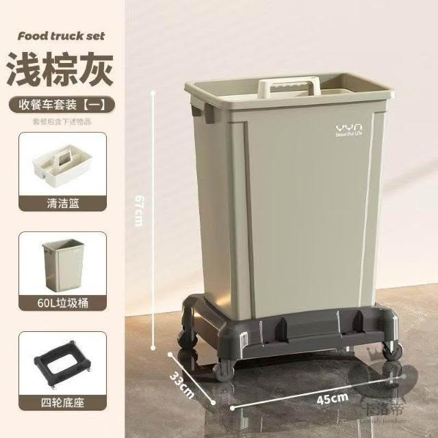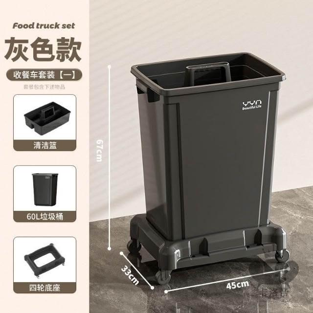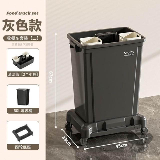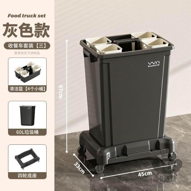 [宅配免運]移動保潔垃圾車 飯店收餐車 帶輪餐飲垃圾桶 商用收餐車 移動收餐車 餐廳收餐車 收納小推車 移動收碗車 OH