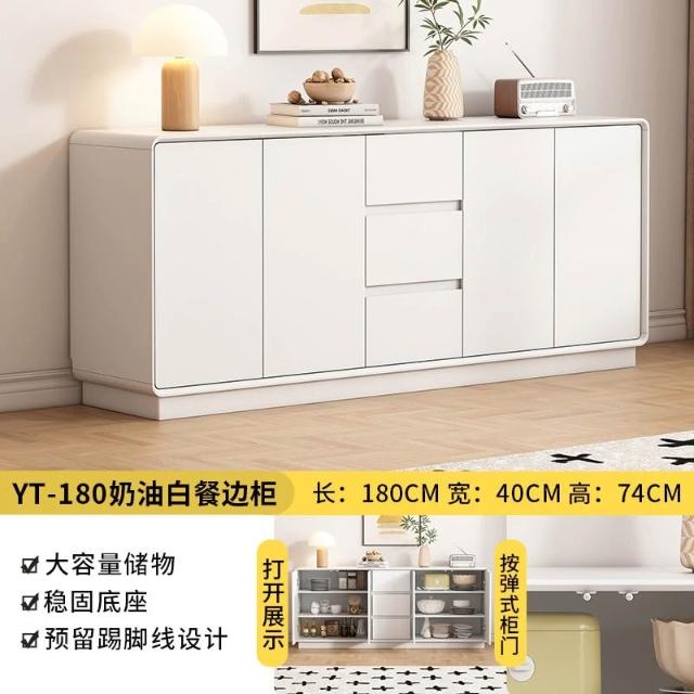 💒利卡家居🏡北歐餐邊櫃廚房靠墻儲物櫃一體落地小戶型法式奶油風櫃多層白色收納櫃置物櫃