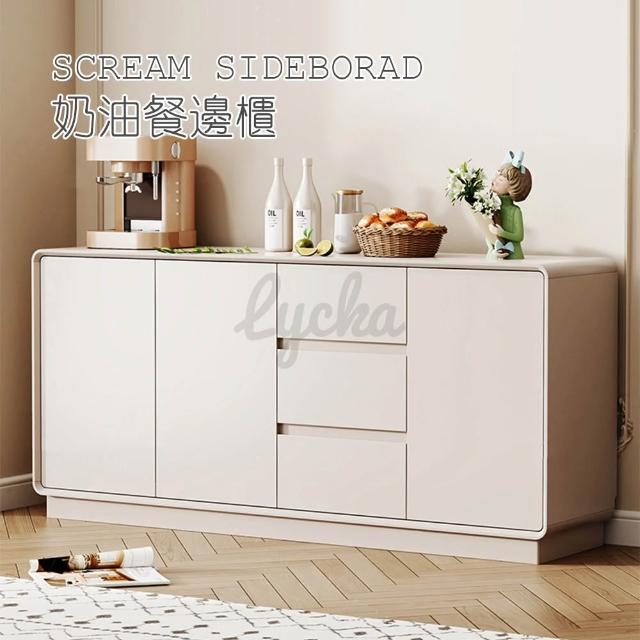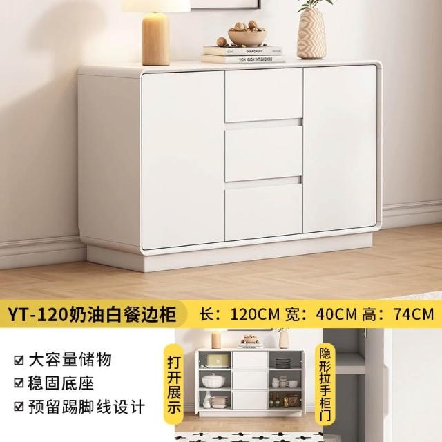 💒利卡家居🏡北歐餐邊櫃廚房靠墻儲物櫃一體落地小戶型法式奶油風櫃多層白色收納櫃置物櫃