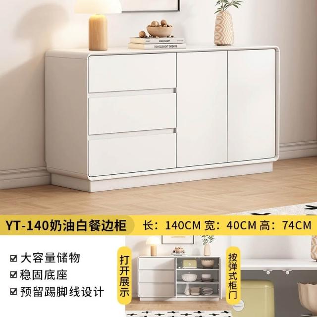 💒利卡家居🏡北歐餐邊櫃廚房靠墻儲物櫃一體落地小戶型法式奶油風櫃多層白色收納櫃置物櫃