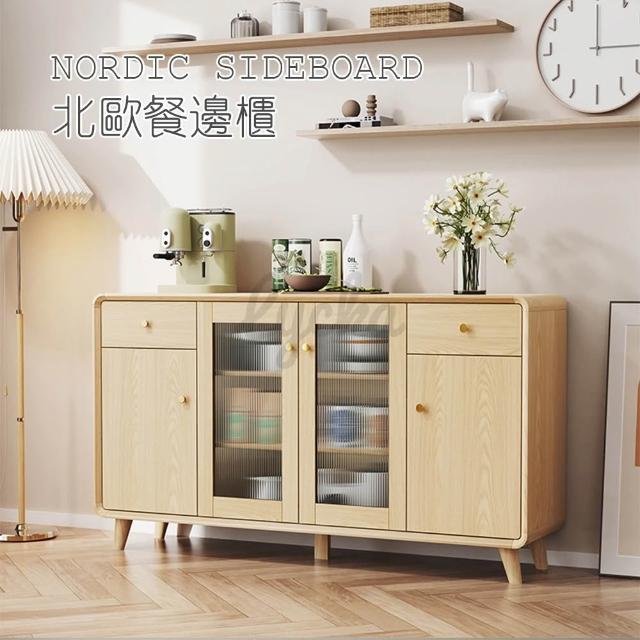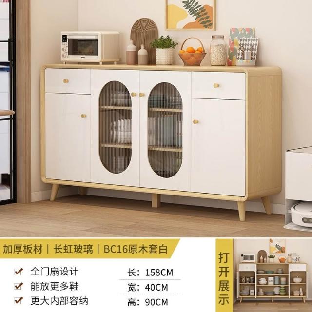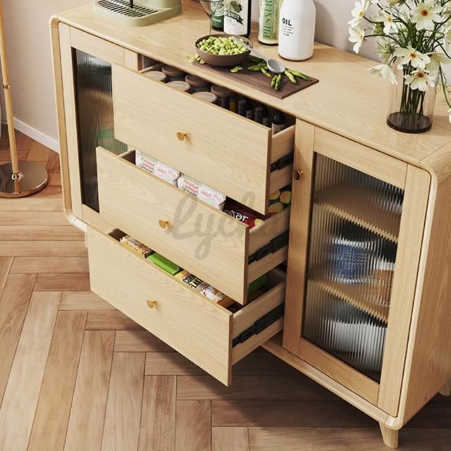 💒利卡家居🏡北歐實木餐邊櫃現代簡約一體靠墻邊櫃家用廚房置物櫃收納櫃儲物櫃原木抽屜櫃