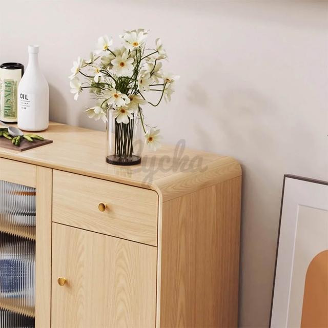 💒利卡家居🏡北歐實木餐邊櫃現代簡約一體靠墻邊櫃家用廚房置物櫃收納櫃儲物櫃原木抽屜櫃