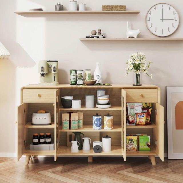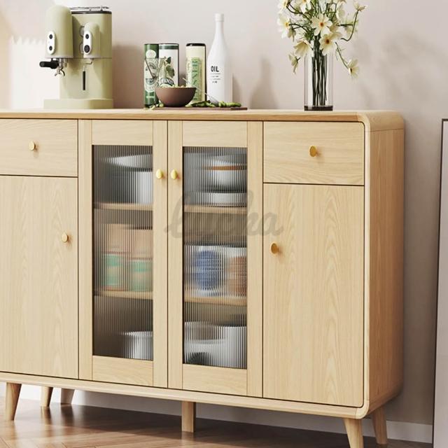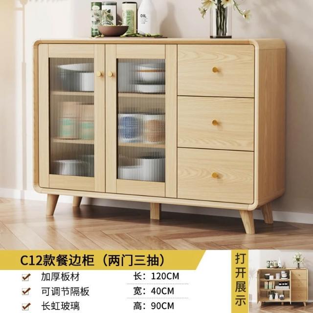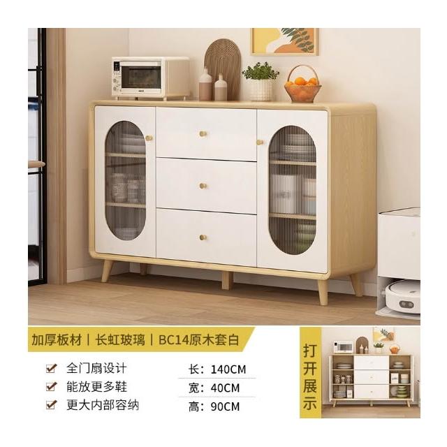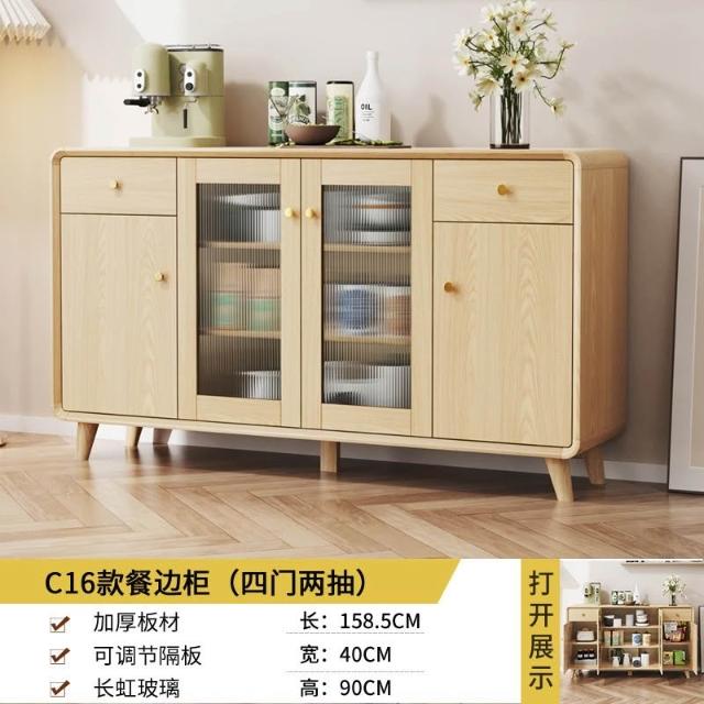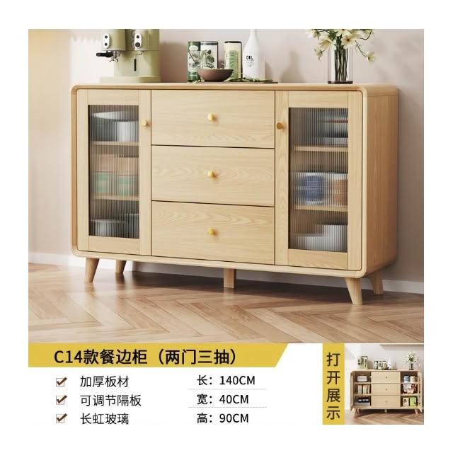 💒利卡家居🏡北歐實木餐邊櫃現代簡約一體靠墻邊櫃家用廚房置物櫃收納櫃儲物櫃原木抽屜櫃