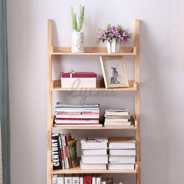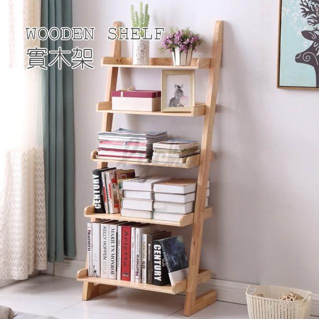 💒利卡家居🏡北歐全實木梯形置物架簡易臥室書架多層家用客廳落地梯架收納架層架