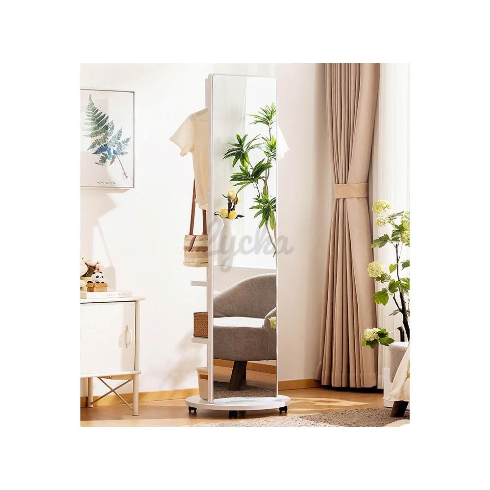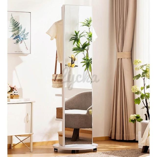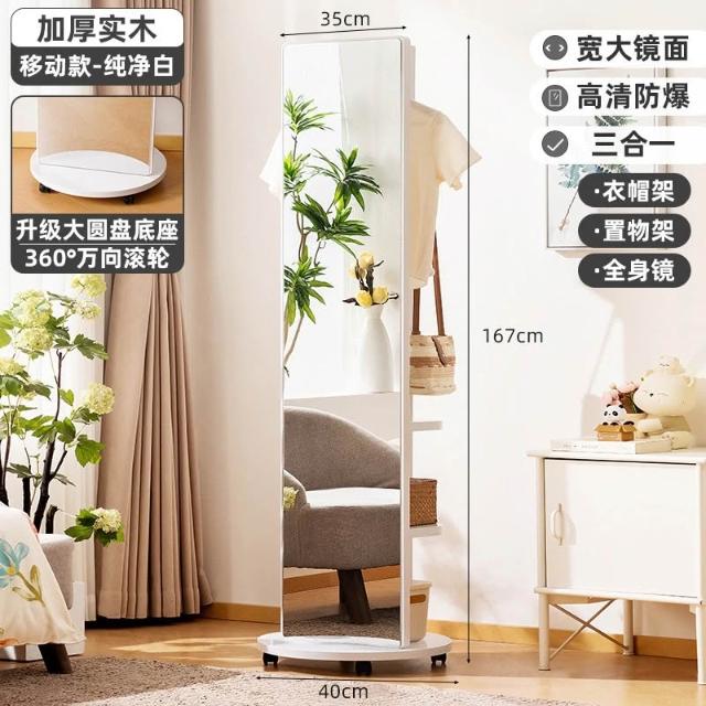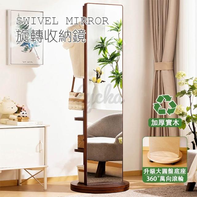 💒利卡家居🏡實木全身鏡穿衣鏡落地鏡子家用帶掛衣架一體臥室可旋轉移動試衣鏡旋轉收納鏡收納櫃