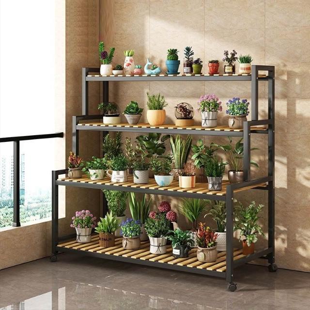 💒利卡家居🏡室內花架 置物架 陽臺花架子 客廳 落地式花架 多層階梯花架 多肉植物 花盆架 加粗鋼板 帶萬向輪