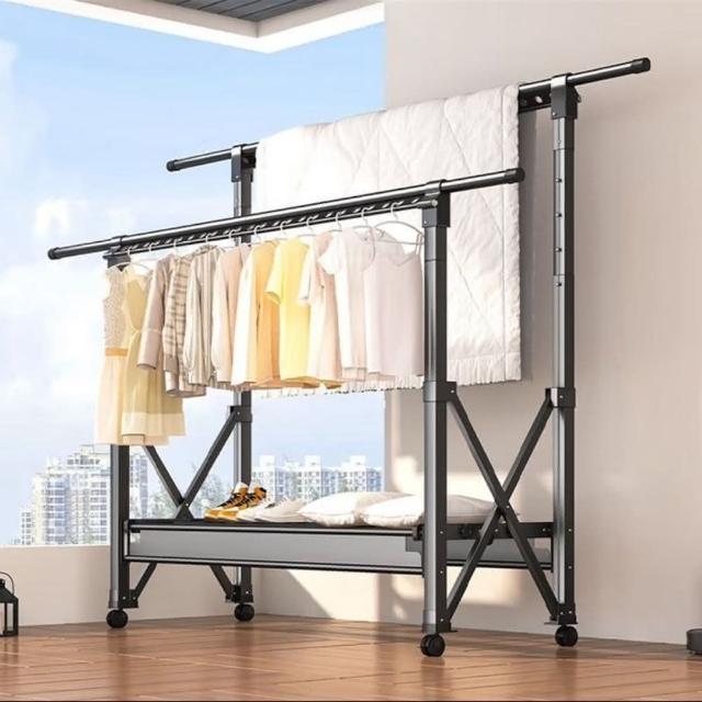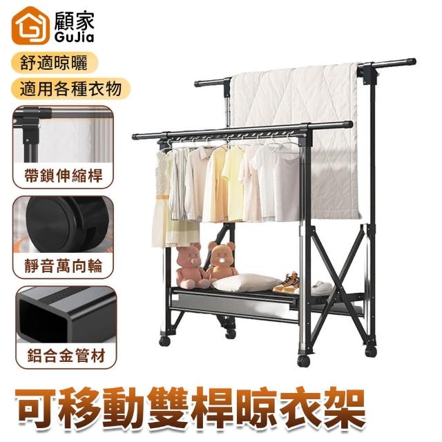 GUJIA顧家 晾衣架 折疊曬衣架 曬衣架 雙桿晾衣架 室內曬衣架 升降曬衣架 雙桿曬衣桿 免安裝 鋁合金材質