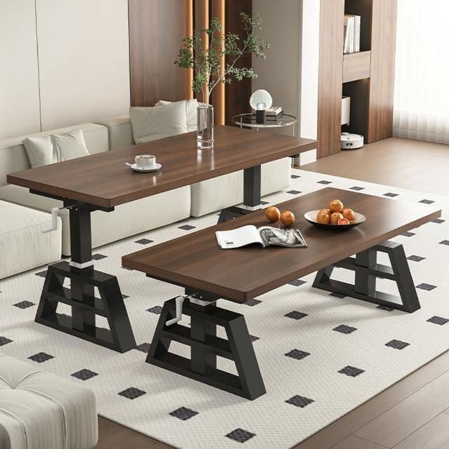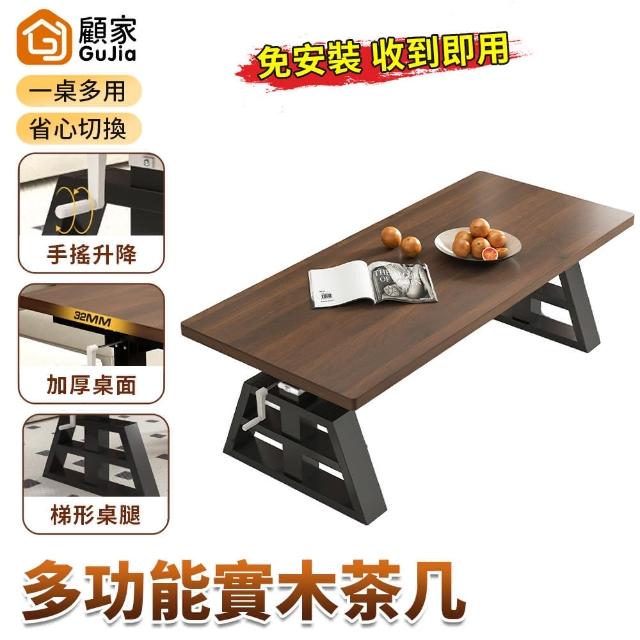 GUJIA顧家 升降茶几 升降餐桌 學習書桌 實木免組裝(吃飯餐桌 升降桌 餐桌 茶桌 手搖升降桌子 梯形桌腿)