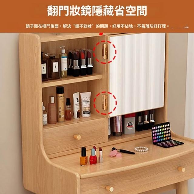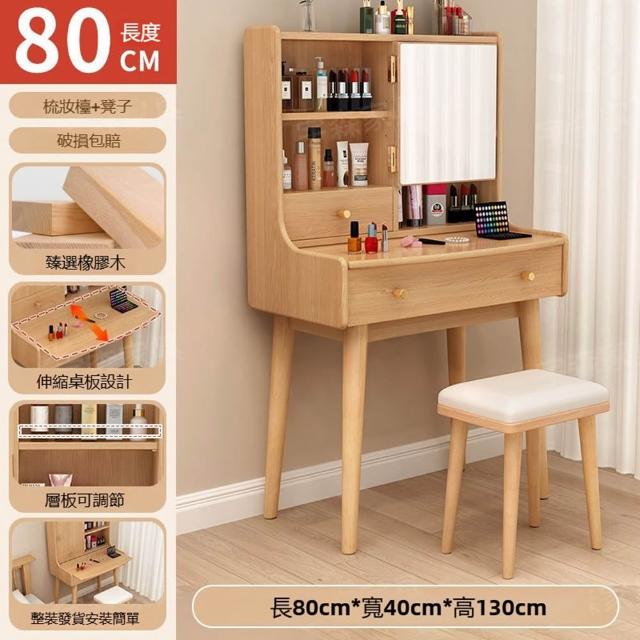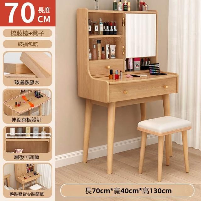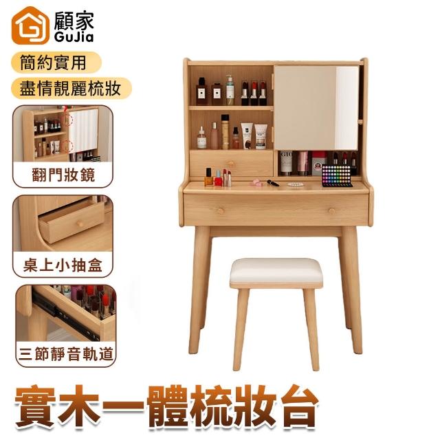 GUJIA顧家 實木化妝台 化妝桌 大容量 可伸縮桌板-附椅(化妝桌 梳妝台 鏡台 化妝桌椅組 書桌化妝桌一體)