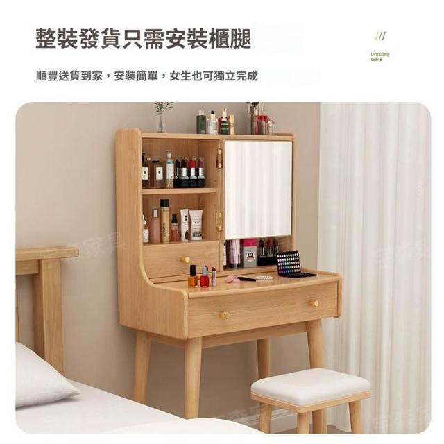 GUJIA顧家 實木化妝台 化妝桌 大容量 可伸縮桌板-附椅(化妝桌 梳妝台 鏡台 化妝桌椅組 書桌化妝桌一體)