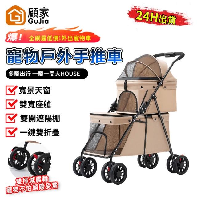 GUJIA顧家 寵物推車 雙層寵物推車 外出輕便 可折疊 寵物戶外手推車 狗狗推車 摺疊推車 貓咪推車