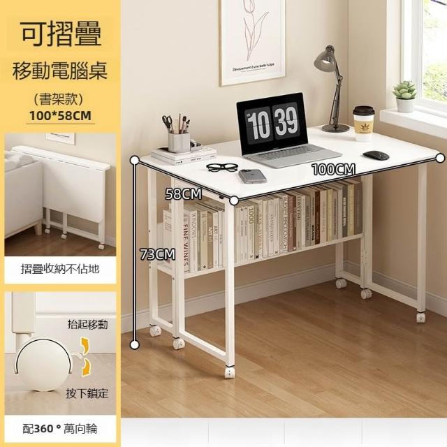 GUJIA顧家 摺疊桌 折疊桌 折疊桌子 移動折疊桌 折疊書桌 電腦桌 辦公桌(折疊設計 打開即用 360°萬向輪 強力承重 )