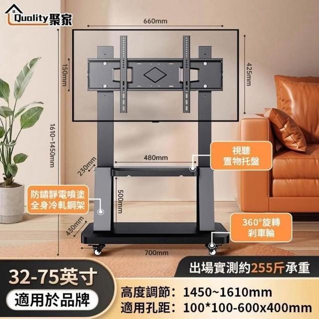 可移動電視立架 壁掛架 電視架 32-75吋通用 一體式底座/加粗承重立柱/360°萬向輪