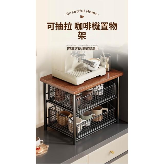 Quality 聚家咖啡機置物架 咖啡機器具擺放台 桌面杯架 多層收納架 收納櫃(分層置物 抽屜置物 拿取方便)