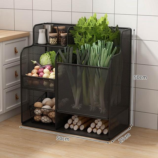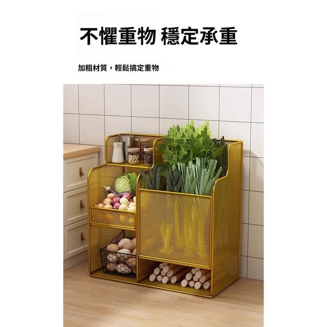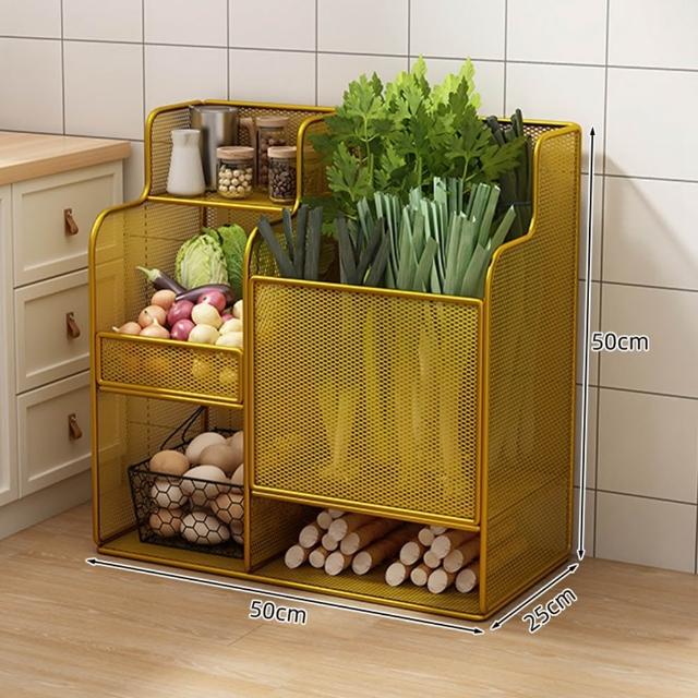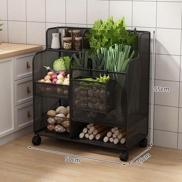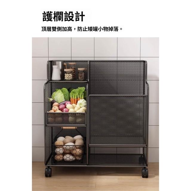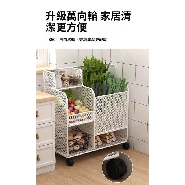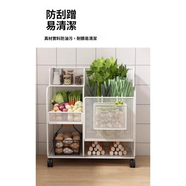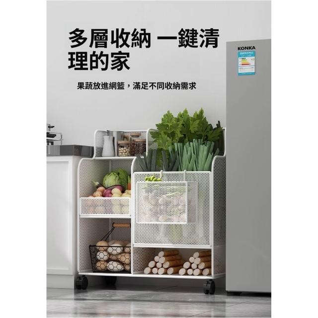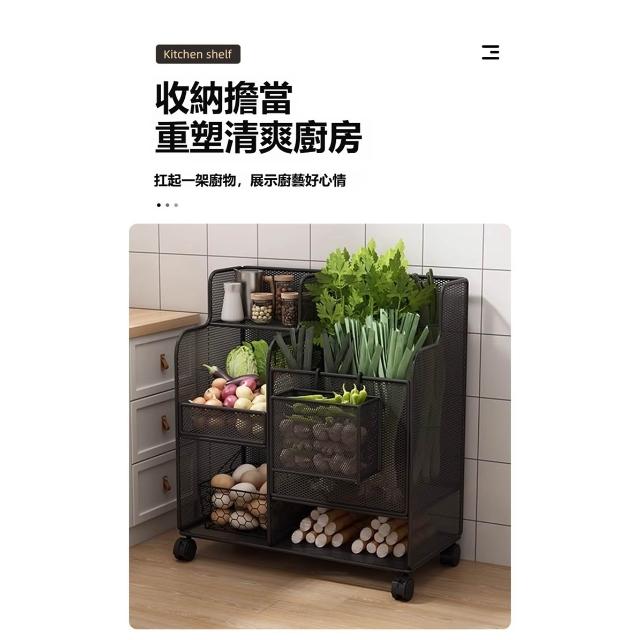 Quality 聚家廚房置物架 多功能水果蔬菜收納筐 多層落地收納架 蔬菜儲物籃(萬向輪設計 穩固承重 圍欄設計)